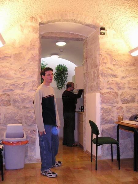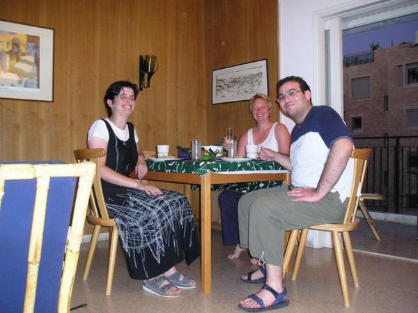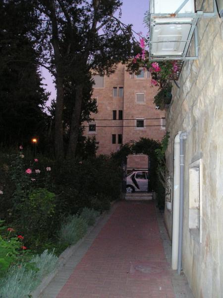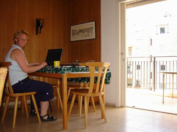 Je to špatně vidět, ale tam, kde je dolní sirka, tam bydlíme a tam, kde je horní sirka, tam chodím do školy. V modrém čtverečku je staré město/The lower match points to our flat, the upper one to our schoolNáš dům. Náš byt je nahoře vlevo/Clary and me live in the top left hand side flatVýhled z našeho balkónu/A view from our balconyA na druhou stranu/A view from our balcony 2Clary v kuchyni/Clary in the kitchenJá v obýváku/Me in the living roomClary in the living roomBalkón/BalconyMůj pokoj/My roomVchod do zahrady/Entrance to the gardenA z druhé strany/And from the other sideRafael Chvátal na návštěvě (přestěhoval se do Izraele v létě)/My friend Rafael who had made an alyiah 2 months before I came to IsraelAviad na návštěvě/Aviad visitingŠešbeš s Aviadem/Sheshbesh with Aviad (He won again, naturally)