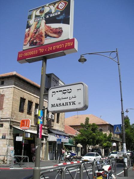 Haron El Rashid, kdysi domov Goldy Meir/Haron El Rashid, which used to be a home of Golda MeirJeruzalém má mnoho tváří/One of the many faces of JerusalemV Jeruzalémě existuje již od doby Britského mandátu zákon, podle něhož musí být všechny domy pokryty světlým tzv. Jeruzalémským kamenem. Dům na obrázku tento zákon nedodržuje a v Jeruzalémě vypadá tak trochu nepatřičně (přesto, že je moc hezký)/Since the British Mandate, a Jerusalem law states that every house in the city has to be covered with a yellow "Jerusalem stone." The architect of this house broke this rule creating a building that looks slightly inappropiate in the town despite it being quite nice otherwiseJasonova hrobka z 2. stol př.n.l. - zapomenutý kus starověku uprostřed moderní čtvrti/Jason´s tumb from Hasmonean period - a piece of antiquity in the middle of a modern neighbourhoodStará vodní pumpa/Old water pumpJeruzalémská YMCA/ Jerusalem YMCAMozaika Jeruzaléma na podlaze její recepce/ Jerusalem mosaic on the floor of its receptionPohled na staré město z Jemin Moše/ A view of the Old City form Yemin MosheOpuštěná stará vlaková trať z Jeruzaléma do Tel Avivu/ Old abandoned tracks from Jerusalem to Tel AvivTakhle tu rostou pomeranče a grepy/ Orange and Grapefruit treesSabra - kaktusový plod navenek pichlavý uvnitř měkký. Z toho důvdu se sabra říká lidem, kteří se narodili v Izraeli (na rozdíl od tzv. Olim, kteří se do Izraele přistěhovali od jinud). Toto přirovnání mi vždy připomíná Karla IV a jeho víno, které se "zprvu hořké zdá."/ Sabra fruit (prickly on the outside and sweet in the inside) which gave a nickname to tough Israelis born in the country (as opposed to new immigrants)