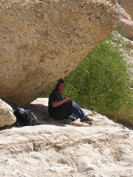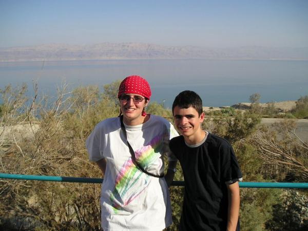 Ein Gedi/A green Ein Gedi oasis in the middle of Negev desertKdyž se pořádně podíváte, uvidíte perfektně maskované kamzíky:-)/Search for two well hidden animals in the pictureNěkolik mých spolužáků/Some of the Yeshiva crowdJoseph, Niki a IlanaJacob, jehož kožní typ se hodí nejtepleji tak do Dánska/Jacob hiding away from the burning sunPodivné palmy/Very weird palm treesMůj chavruta Adiv a jeho žena Ilana. Všichni jsme turisticky napatlaní mrtvomořským bahnem/My chavruta Adiv and his wife IlanaMůj chavruta Dani/My chavruta Dani