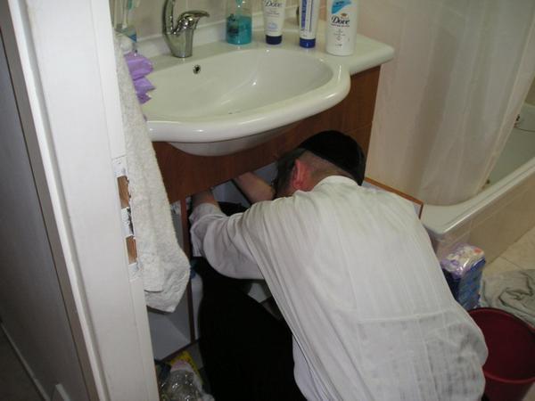 Ruven spravuje odpad (poprosil mě,abych ho vyfotila a vyvěsila tu fotku na web, aby všichni viděli, že doma pomáhá:-)/Ruven the plumberMalka a RachelMalka top model