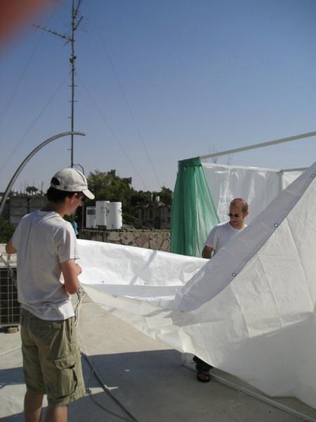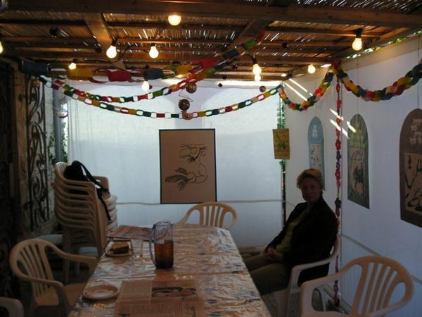 (x) Polotovary pro lulav/Arba minim ready to be tied together(x) Všechny součásti lulavu musí být bez poskvrnky, proto většina lidí stráví nemálo času pečlivým prozkoumáváním etrogu i všech větviček/All the parts of lulav have to be without blemish. Therefore, most people spend considerable time inspecting them carefully before actual purchase(x) A když si nejsou jistí, poradí se svým učitelem nebo chavrutou/Consulting a teacher(x)(x)(x)(x)(x)(x)Moje spolužačka Sheri se radí s rebem Mordechaiem (který nás obě učí Talmud)/Shari consulting her etrog purchase with reb Mordechai (our Talmud teacher)Doma před začátkem Sukot/Shortly before the beginning of the holiday at homeSuka kterou jsme společně stavěli se spolužáky Josephem and Joshem/Building a succa with Joseph and JoshMelanie + Kobi, Tovah a Zach v suce našeho učitele reb Pesacha v Givat Masuah/ Melanie + Kobi, Tovah and Zach at our teacher reb Pesach´s succa in Givat MasuahÚchvatný výhled z Givat Masuah na Emek Refaim/ A view of Emek Refaim from Givat MesuahSukot v hotelu Imbal/ Imbal hotel succotSukot v Jamin Moše/ Yamin Moshe succot(x) Nachlaot(x) NachlaotSuka v restauraci na Emek Refaim/ A restaurant succa on Emek RefaimSuka v restauraci "Little Italy" v Ulici Keren Ha-Jesod/A succa in Little Italy restaurant on Keren Ha-Yesod streetSuka ve starém městě/Jewish quarter of the Old TownChabad suka ve starém městě/Habad succa in the Old TownSuka v mesiánském křesťansko-židovském kostele Christ Church ve Starém městě (toto náboženské hnutí věří, že uspíší druhý příchod Ježíše tím, když pomohou shromáždit všechny židy v Izraeli. Významnou součástí jejich práce je křesťanská misie mezi židy)/ A succa in "Christ Church," a messianic church in the Old time. This religous movement believes that the "Second coming" can be speeded up by bringing Jews to Israel. They also do missionary work in Israel and try to convert Jews to ChristianitySuka před Christ Churchem (moc mě to mrzí, ale ani jedna z jejich suk není košer:-(/ A succa in front of Christ Church (unfortunatelly, none of their succot is kosher:-(:-)Suka u zdi nářků/ A Succa at the Western WallA uvnitř/Inside of the Western wall succa(x)(x)(x)(x)Clary se "čtyřmi druhy/ Clary and Arba MinimV Suce u našeho učitele Zviho z Paidei, v Ze´ev Yakov/ In Zvi´s succa in Ze´ev YaakovS Zvim a Avigail/With Zvi and Avigail