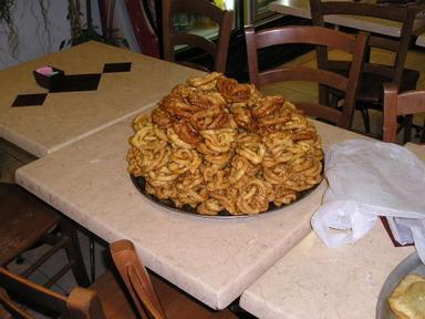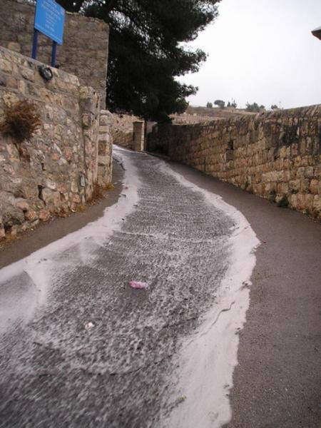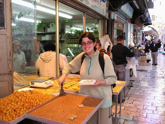 Zleva tatínek, maminka, dědeček a babička/Me´tal with parents and gradparentsMaminka dostala první aliu/The new mother´s first aliyahPožehnání od Roš Ješivy reb Šmuela/Rosh Yeshiva´s blessingTohle mělo být já a Roy a panoramatický záběr Jeruzaléma. Jinou fotku z jeho návštěvy nemám./ This was supposed to be Roy and I with the scenery of Jerusalem at dusk. I pasted the picture because I dont have any other and I wanted you to believe me we really metRoy mě mimo jiné vzal na procházku po campusu Hebrejské univerzity. Toto je dech beroucí výhled na Judskou poušť a Jordánsko z Har Ha-Cofim/Among other places, Roy took me to the Hebrew University Campus. This is the breath taking view on Judean desert from Har Ha-TzofimTohle mělo být za námi na té nepodařené fotce./ This is what you should have seen behind Roy and me two pictures agoZapadající slunce nad zamračeným Jeruzalémem 2 dny před tím, než začalo pršet./ Cloudy Jerusaelm dusk 2 days before the rain startedV Jeruzalémě začalo pršet a já se vydala na návštěvu starého města. Jela jsem na kole, nechtěla jsem zmoknout a chtěla jsem v muslimské čtvrti vypadat nenápadně. Clary to okomentovala slovy: "Neboj, teď vypadáš bezpečně jako muslimka."/ A combination of rain protection, road cycling safety and an (unsuccessful) attempt to dress modestly for the visit of the muslim quarter of the Old TownPři první cyklo-jízdě deštivým Jeruzalémem jsem si poprvé všimla, že moje kolo nemá blatníky/ During the first bike ride through rainy Jerusalem, I noticed with great surprise that my bike has no fendersV muslimské čtvrti starého města se sežene všechno od špendlíků po krávu/You name it and you shall get it in the muslim quarter of the Old Town (for no price)Příprava skopového rizota pro konec denního ramadánového půstu/Preparing a lamb rozzotto for breaking the ramadan fastZásobování v úzkých uličkách/Transporting supplies in the narrow streetsOvocný trh u Damašské brány/ Fruit market at the Damascus GateJedna z uliček/One of the Muslim quarter streetsMuslimské ženy prodávající čerstvou mátu, hrozny a datle/Muslim women selling fresh nana, grapes and datesPečení velkách chlebových placek lafa/ Baking the arab lafasTradiční blízkovýchodní řeznictví/Traditional Middle East butcher´sArabské sladkosti, které jsou nedílnou součásti večerních ramadánových hostin/Traditional arab sweets, essential part of the every day break of the ramadan fastSlavné arabské lívance katajf, které muslimové plní sladkým nebo slaným sýrem, ořechými a podobnými dobrotami a jedí je při večerní hostině během ramadánu/ Kataif - traditional pancake, which the muslim fill with cheese and nuts and eat for the after-fast feast during Ramadan...a víc sladkého/...and more sweets...a ještě trochu/...and even moreBez komentáře/Self-explanatoryArménská čtvrť (ne vždy všichni chodí přikázaným směrem)/Armenian quarter (not everybody follows the signs)Jeruzalémané v prvním dešti/The first rain at Jaffa gateSukot u zdi nářků (sem tam je vidět pány třesoucí "čtyřmi druhy")/Sukot at the Western Wall (notice several men shaking the arba minim)Ti mladíci s divnými bílými věcmi na hlavě si jen chrání klobouky před deštěm/The funny white things on the boys´heads are plastic bags protecting their hats from rainVýchodní (palestinský) Jeruzalém/ East (Palestinian) JerusalemPohled na Jeruzalém z Olivetské hory přes židovský hřbitov/A view of Jerusalem from Mount of Olives over the Jewish cemeteryPřekvapivé smetiště na hřbitově na vrcholu Olivetské hory/Junk at the top of the Mount of Olives cemetary takes by surpriseOlivetská hora s kostelem Domine Flavis/Mount of Olives with Domine Flavis church on the rightDomine Flavis a ruský ortodoxní kostel sv. Máří Magdalény/ Domine Flavis and Russian orthodox Church of St. Mary MagdaleneZapomenutá rakev na hřbitově na Olivetské hoře/Abandoned cofin at the Mount of Olives cemeteryPo prvním prudkém dešti/After the first torrential rainPohled na Olivetskou horu z údolí Kidron/A view of Mount of Olives from Kidron Valley
