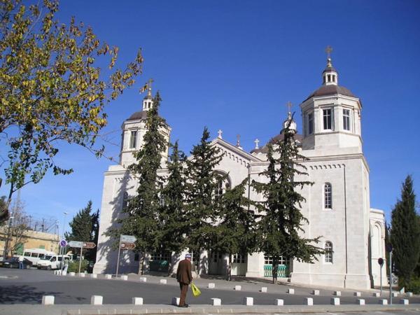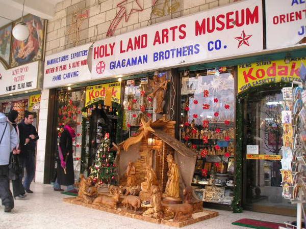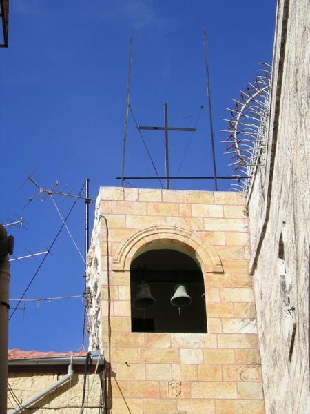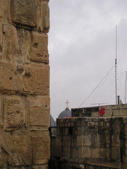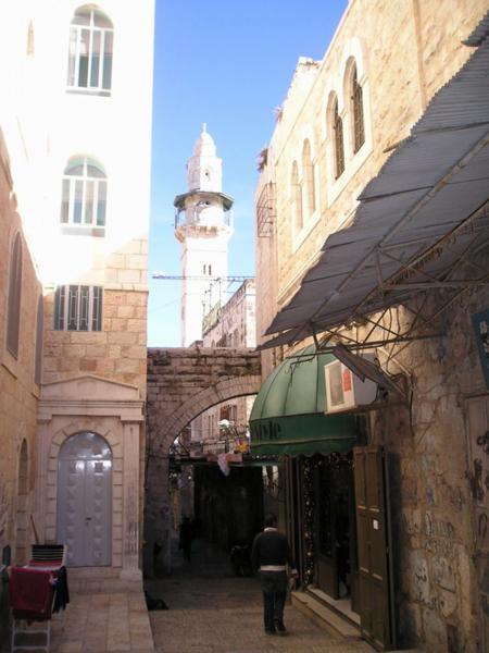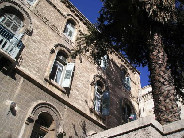 Bejt Sergej, tehdejší ekvivalent hotelu Interkontinental pro ruske poutniky-aristokraty. Dnes centrum pro ochranu izraelské přírody/Beit Sergei, The Pupp of the mid 19th century for Russian pilgrims-aristocrats. Nowadays the office of Society for Protection of Israeli NatureKatedrála Svaté Trojice (ruská ortodoxní)/Russian orthodox Holy Trinity CathedralZe strany/A View from one of its sidesUvnitř/InsideHospic St. Louis na hranici Ruské kolonie/St. Louis hospital for terminallz ill on the border of Russian compound and the Old CitySymbol Carské palestinské rusko-ortodoxní společnosti/ Symbol of the Imperial Palestinian Russian Orthodox SocietyHranice z muslimskou čtvrtí (všimněte si vánoční výzdoby na obchůdku v popředí)/Border of the Christian and Muslim quarters (notice the Christmas decoration of the shop in the foreground)Tady už jsem se zase našla - Jafská brána/I finally found a way out - the Jaffo Gate