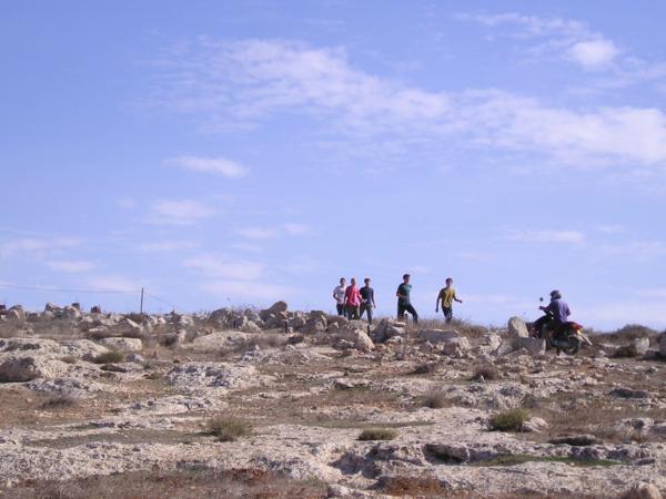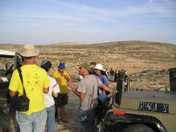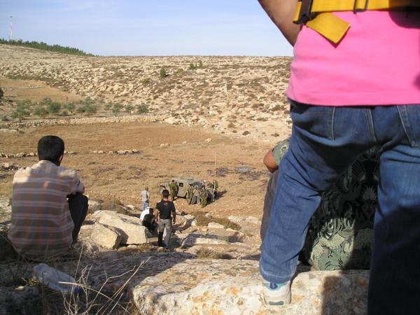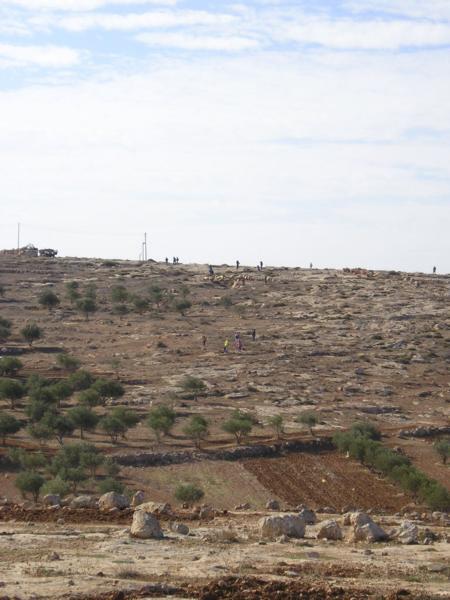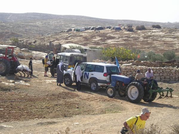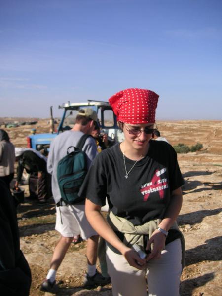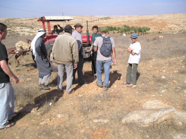 9:30 Přijíždíme a zjišťujeme, co a jak. Zemědělci z palestinské usedlosti plánují zorat několik polí pod svou usedlostí.V arabském světě se "ani do války nejde bez šálku čaje." Já svůj piji s velkým sebezapřením (na Blízkém východě je pravidlem číslo jedna nepít vodu z neznámého zdroje)Francouzská novinářka Lulu mluví se ženou nejstaršího farmáře oblečenou do tradičních svátečních šatůPřijíždějí novináři. Všichni jsou Palestinci. Pracují pro Reuters, Al Džazíru, FTP a dalšíNovinář společnosti ReutersJedna z palestinských dívek v očekávání událostí začínajícího dneJiná z palestinských žen (její syn s tričkem izraelského fotbalového klubu Makabi Haifa)Ráno se ještě usmívámFarmáři s vojákem IDF domlouvají strategii pro práci na poli.Izraelská amáda plní na Západním břehu dvojí roli - chrání židovské osadníky před Palestinskými obyvateli a zároveň má bránit Palestinské farmáře před židovskými osadníky. Dvojí role samozřejmě působí mnoho problémů a morálních dilemat. Situaci nepomáhá ani to, že mnozí vojáci působící v této oblasti jsou vojáci v záloze. Odbývají si zde Milujim, povinnou záložní vojenskou službu.Vedoucí naší skupiny informuje místní policii, že jsme dorazili na místoPohled na palestinskou vesnici v SusyiiDcery farmářů vyhánějí ovce na psatvuJedna ze skupin dobrovolníků odchází na jeden z kopců dělící palestinská pole od židovské osady Susyia a farmáři začínají oratMy odcházíme na druhý kopec. O chvíli později se setkáváme s prvními osadníky. Vynoří se za kopcem, přiběhnou k nám, každého zblízka vyfotí a rychle odběhnou pryčSkupina vojáků společně s dobrovolníky čeká, co se bude dít dál. Naše skupina stojí u pole, kde hrstka farmářů zorala pole a chystá se sítPřichází hrstka mladíků, kteří se nejdříve zdráhavě dívají naším směrem a pak se rozeběhnou k farmářůmObíhají nás a běží k farmářůmPouštíme se do patetického slovního boje, který zjevně nikam nevede. Jim je jasné, že farmáři, potenciální terroristé, orají na jejich zemi, kterou Bůh zaslíbil židům před tisíci let. My jsme levičáci, kteří škodí Izraeli, chováme se jako gójové a nacisti. Argumentovat právem Palestinců na oděláváním vlastní půdy, Biblí, lidskými právy na důstojnost a obživu se míjí účinkem. Apel na morální intuici a upozorňování na bezvýchodnost cyklu ubližování civilistům na obou stranách nemá význam.Mladí osadníci dosáhli svého - farmáři sice stihli zorat, ale nestihli zasít. Odcházíme k druhé skupiněJe mi do pláče a mám vztek. Probírám s Jaakovem, co se stalo.Osadníci, armáda a farmáři se po střetu domluvili, že farmáři mohou doorat rozoorané pole pod podmínkou, že dobrovolníci odjedou a nebudou do situace nadále nijak zasahovat. S křížkem po funuse přijíždí zástupci UNOdjíždíme do další vesnice, kde se jiná skupina dobrovolníků dostala do střetu s armádou. Na obrázku arabská vesnice Maon.Za palestinskými farmáři je vidět řada polí ve Vádí, které je předmětem sporu. Zelený vrcholek hory je hranicí židovské usedlosti Maon.Dozvídáme se, že na místě je skupina křesťanských dobrovolníků, která se dostala do střetu s armádou. Jeden z dobrovolníků je obviňen z napadení vojáka a hrozí mu zatčení. Orání je zastaveno a všichni čekají, jestli se podaří vyjednat propuštění dobrovolníkaPřipadám si nemístně. Celá situace je absurdní - zhruba čtyřicet lidí sedí s rukama v klíně ve čtyřicetistupňovém vedru - farmáři, vojáci, policie, osadníci a dvě skupiny dobrovolníků. Předmětem sporu je pole s nekvalitní kamenitou půdou zhruba o velikosti Staroměstského náměstí. Vytahuji z batohu Chumaš a začínám se učit na Shayiovu hodinu na druhý denDobrovolnice z křesťanské organizace za lidská právaItamar si krátí chvíli povídáním s palestinským klukemKřesťanský dobrovolník je po přivolání místní policie propuštěn. Jedna z dobrovolnic je jako svědkyně legitimovánaPřijíždí velitel vojenské jednotky, která v oblasti zasahovala. Ukazuje se, že jde o vodního inženýra z Haify, který si v této oblasti odbývá miluim. Pouští se do řeči s Yaakovem. Ujišťuje se, zda se nikomu nic nestalo a připomíná nám, abychom pili dost vody - nemohu se neusmát. V celém dni mého "boje za lidská práva" je toto nejrozumější okamžik.Nasedáme do aut a odjíždíme zpět domů
