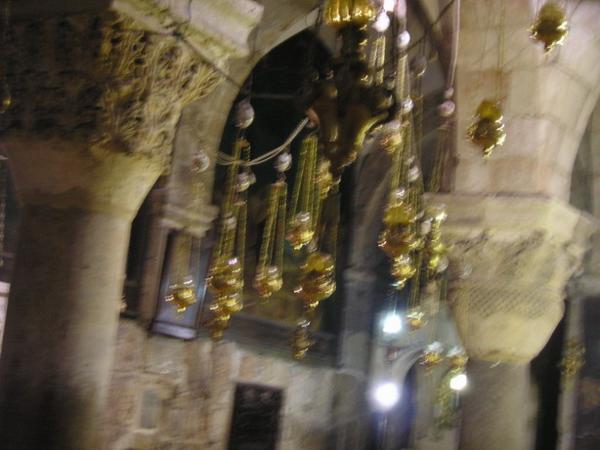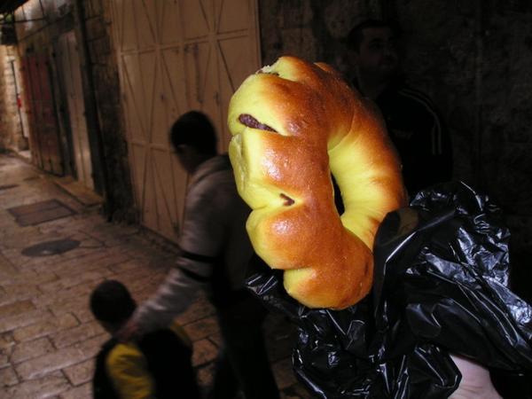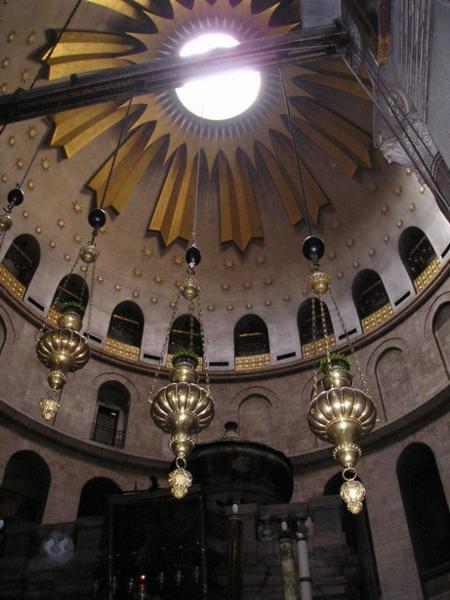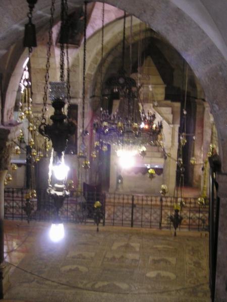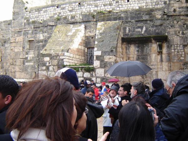 Pohled na Kostel Sv. Hrobky (místo, kde byl podle křesťanské tradice pochován Ježíš)/ Church of Holy Sepulchre (the place is believed to be the site of Jesus´s grave)Různé obrázky uvnitř kostela/Various pictures of the insideKoptská část křesťanské čtvrti/Coptic part of the Christian quarterArabský chleba plněný drcenými datlemi/Arab bread filled with crushed datesTohle místo jsem objevila náhodou - je z něj neobvyklý pohled na celé staré město (případným zájemcům ráda prozradím, kde to je:-)/Just by chance I found this place with an unusual view of the Old town (I am willing to reveal the secret of where exactly it is, though)Páteční zmatek před bezpečnostní kontrolou na hranici mezi žid.a musl. čtvrtí/Friday chaos on the security check between the Jewish and Muslim quarters