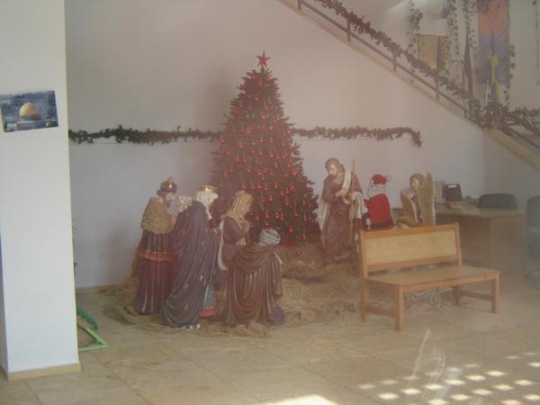 V plné polní na skotský večer./Ready for a Scottish Christmas night.Kostel svatého Ondřeje./St. Andrew Church on Christmas Eve.S Josephem/With JosephBetlém je zhruba 10 minut cesty autobusem of našeho domu. Město narození Ježíše leží na Západním břehu Jordánu, který je v nyní od židovského Izraele oddělen bezpečnostní bariérou (zdí respektive plotem). Proto každý příchozí musí na cestě projít check-pointem/Beth Lechem is aproximately 10 minutes of a bus ride from our house. As the town is a part of the West Bank territory, one has to pass a check-point both on the way there and backZeď i check pointy jsou předmětem ostré Izraelské i mezinárodní diskuse. O tomto problému doufejme napíši ještě tento týden./The barrier is a hot and intensively discussed issue both on national and interbational level. I shall hopefully write about it more within a week from now.Nápisy na palestinské straně zdi (Betlémský check point). (výjevy zdi (platí to o všech) na těchto stránkách nutně nevyjadřují můj politický názor)/Graphiti on the Palestinian side of the wall (Beth Lechem check point).(the images of the wall pated on this web do not necessarily express my own political view)*Betlém v betlémském turistickém centru (kombinace obrázku Skalního dómu a výjevu narození je první z mnoha obskurních kulturních spojení, které jsme ten den viděli)/Nativity scene in the Beth Lechem turist center - the combination of creche and a picture of the Dome of the Rock is only the first of the many peculiar cultural merges of the town we saw on that day)*Náměstí před Chrámem Narození/The Manger Square in front of the Church of NativityChrám Narození vystavěný nad místem, kde se podle tradice narodil Ježíš/The Church of the Nativity, which was built over the site on which - according to Christian tradition - Jesus was born* Španělsky mluvící křesťané tančící před kostelem/Spanish speaking Christians dancing in front of the churchNádvoří kostela/The courtyard of the ChurchTelevizní rozhovor s jeruzalémským biskupem/TV interview with the Jerusalem BishopBetlém každoročně o prvním vánočním svátku navštěvuje římskokatolický patriarcha, kterého z Jeruzaléma do Betléma doprovází "turecká stráž" (dnes josu to palestinští křesťané z Jeruzaléma v tureckých kostýmech). Tato tradice pochází z dob Osmanské říše./Beth Lechem is visited by the Roman-catholic patriarch every Christmas day. On his way from Jerusalem, he is acompanied by a Turkish guard. This tradition goes back to the times of Otoman rule over Palestine (the today´s guard are Palestinian Christians from Jerusalem in traditional costumes)Filipínská mše v chrámu Sv. Kateřiny (část chrámu Narození)/Philipine service in St. Catherine church (a part of the Nativity church)Vlastní Chrám Narození/Church of the NativityVchodu do kostela se říká "Brána pokory"/The entrance to the church is traditionally called "the Gate of Humility"Betlém je skrz na skrz arabským městem/Beth Lechem - contrary to the expectation of many - is a genuine Arab townZeleninový trh/Vegetable marketFalafel (který je tu o polovinu levnější než v Jeruzalémě)/Falafel (which is half the Jerusalem price here)Je libo šašlik?/Paculiar way of preparing Shashlik on the streetBez komentáře/No commentJeště víc bez komentáře/Even less commentMinisterstvo komunikací a pošta/Ministry of communication and a post officeObskurní kombinace - papež a "palestinský mučedník" respektive palestinský terorista na jedněch vratech/An obscure combination of posters of the pope and a "palestinian martyr" (palestinian terrorist)Ulice Betléma/Beth Lechem streetsMléčná grotta, kde podle tradice Marie kolila Ježíše. Když prý kapka jejího mléka spadla na zem, jeskyně mléčně zbělela (dnes je ale celá černá od kouře lamp). Podle jiné tradice se tu Marie, Josef a Ježíš schovávali při tzv. "Vraždění neviňátek"/Milk Grotta - according to one tradition, when Mary nursed Jesus in this cave, a drop of her milk fell on the ground turning the stone of the cave from red to chalkly white (the cave is pitch black from the smoke of the lamps today, though)Výjev kojící Panny Marie je v křesťanské tradici velmi neobvyklý (další kulturní zajímavost - jedna ze svíček v popředí je jahrzeitová košer židovská)/An image of a nursing Mary is a rather rare phenomenon (another cultural peculiarity - one of the candles is a Jewish memorial Jahrzeit candle)Celý den šíleně pršelo:-)/It rained cats and dogs the whole day that day:-)Ježíšek všech velikostí/Baby Jesus of all sizesCheck point na cestě zpět/The wall on the way backTo se snadno řekne, hůře realizuje v praxi (nápis říká "Mosty, ne zdi"). Na obrázku Clary a Eva/Easier said than done. (Clary and Eva next to the wall)Betlém, město narození Ježíše/Bethlehem, the birthplace of JesusMojžíš předává svou hůl Herzlovi (ilustrace z knihy věnované Herzelovi sionisty z Buenos Aires v r. 1903)/Moses hands over his rod to Herzl (illustration on the cover of a book granted to Herzl by Zionists from Buenos Aires in 1903)