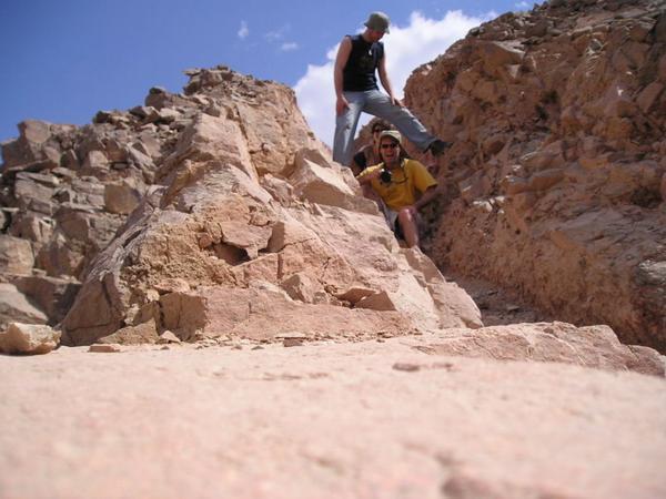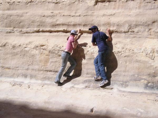 Přírodní rezervace Ein Avdat/Ein Avdat nature reserveTovah a Jeremy šplhají/Tovah and Jeremy climbing up a rockTovah hlavou dolů/Tovah and her childhood dreamrabbi GoldfarbRichard a MattKráter, pohled z Mitzpe Ramon/A view of the crater from Mitzpe Ramon