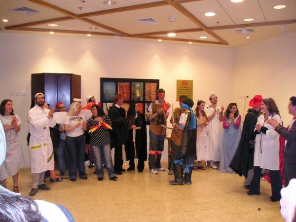 Příprava mé masky./ Dressing upJoseph (a jeho skrytá maska uprchlého modela) a Jenny/ Joseph and JennyS/With JennyV synagoze před čtením svitku Ester/In the synagogue before the megilah readingNoa při čtení/ NoaDavid, Spencer (moje současná chavruta na Rašiho) převlečená za Sotu (ženu podezřelou z cizoložství), Sherri, která jde za jednu z kapitol, kterou jsme studovali v talmudu a Niki./ David, Spencer, Sherri and NikiAdiv a jeho žena (jejich maska je složitá na vysvětlování, nechme to tak)/Adiv and IlanaJeremy byl neodolatelný/JeremyJeremy a MikeBrooke, moje chavruta na mišnu využila toho, že je v očekávání/Brooke, my Mishna chavruta and her soon-to-be born childSoutěž o nejhezčí masku/Costume contestS Joshem/With JoshReb Shmuel a jeho žena Yael/Reb Shmuel and his wife YaelShayiar. Shlomo, Jeremy a SpencerJeremy během purim spielu/Jeremy at purim spielr. Lebeau vysvětluje složitou gematrii. Vedle něk Corey, můj kolega gabai./R. Lebeau and Corey, my gabai buddyMichelle a TovahShayia a jeho rozprava na téma plastiková láhev/Shayia and his drash on a plastic bottleProti argumentace r. Goldfarba/Counter-drash of r. GoldfarbTovah, r. Mordechai a JoshS Yael, Joseph(em) a Josh(em)Se/With Seth(em)Melanie a KobiGabiMarcus a Me´tal