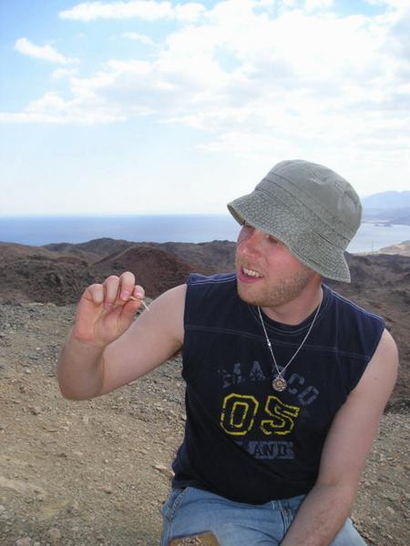 Eilat-město uprostřed pouště/Eilat-a city in the middle of a desertMike a DavePohled na jordánskou Akkabu/A view of AqabaVýlet do pouště/A trip to desertPohled do Egypta/Border with EgyptSinajská poušť (pohled do Egypta)/Sinai desert (View of Egypt)David jí poprvé v životě sardinky v oleji/David eats sardines in olive oil for the very first time in his lifeV Eilatu jsem se potkala se svou brněnskou kamarádkou Janou. Svět je malý./Meeting my Czech friend Jana - what a small worldV oceániu/In the Eilat underwater observatoryNa hranicích/On the borderKufie je jednoznačně to nejlepší, co může člověk v poušti na hlavě mít - jak jako ochranu před sluncem tak jako izolaci v zimně./Kufiya is by far the best head covering for both cold and hot weather in the desertWadi RumNa návštěvě u našeho taxikáře Mohameda (a jeho 8 dcer)/Visting our taxi driver Mohamad (and his 8 daughters)