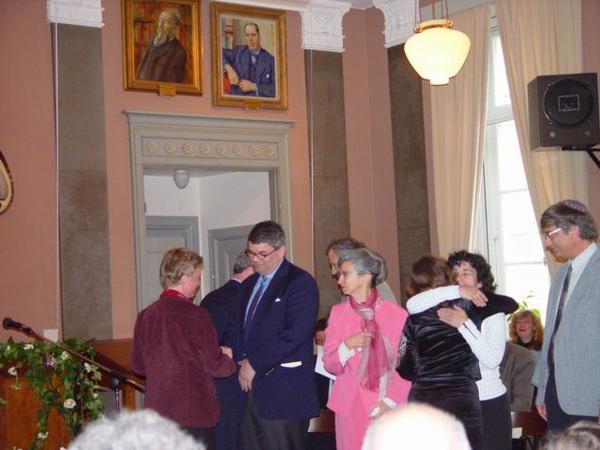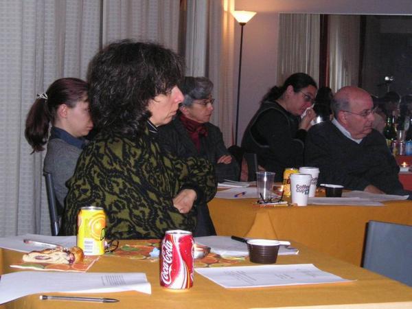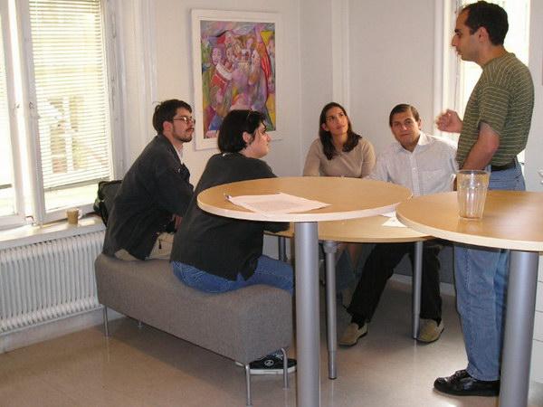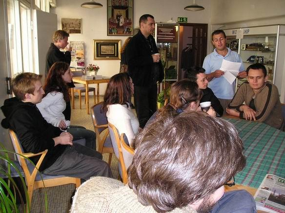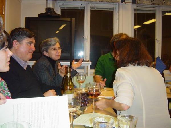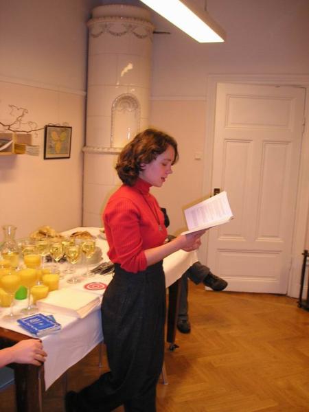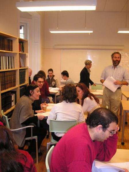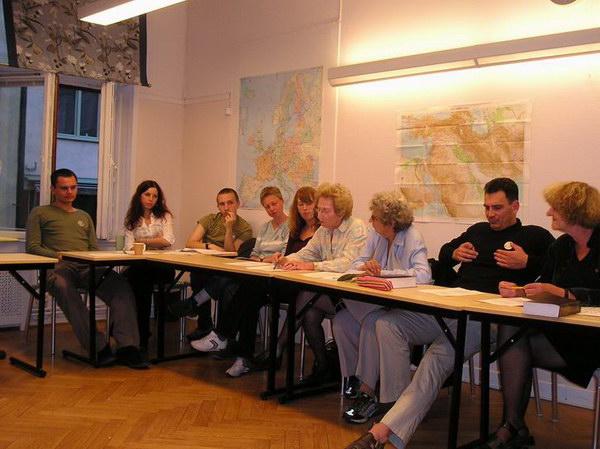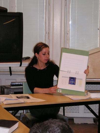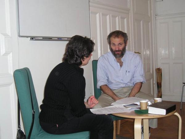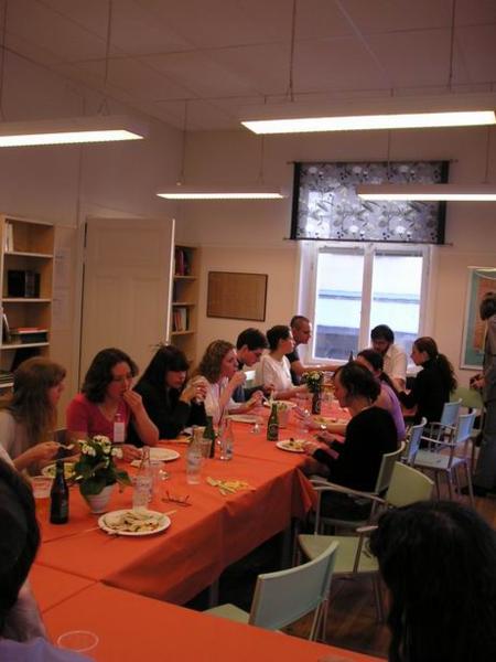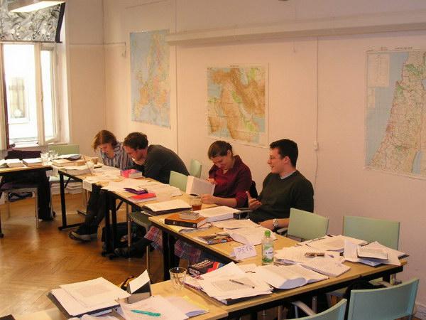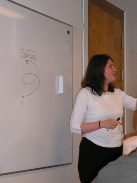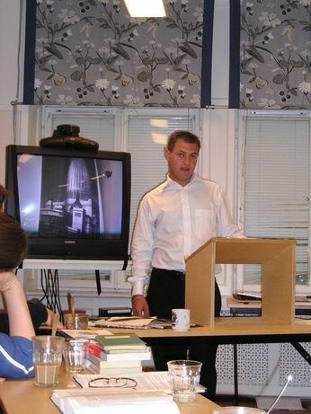 Během letního semestru musí každý ze studentů vypotit závěrečnou práci, kterou na konci studia prezentuje před všemi ostatními. Do tohoto souboru budu během posledního měsíce přidávat nové obrázky tak, jak budou prezentace přibývat./I shall be adding your pictures throughout the month. I appologize to Lena to whose "demonic" presentation I forgot to bring my camera.Clařina prezentace biblického příběhu Celofchatových dcer v jeho klasických a moderních interpretacích./Clary´s presentation of the interpretaion of the biblical story of Zelophehad´s daughtersAviad se snažil vymyslet, jak se dá chevruta použít ve vyučování sekulárních předmětů/Aviad´s choice between chavruta and execution.Torkel začal pracovat na novém románu (určitě jsem už někde zmínila, že je to spisovatel)/Torkel´s remarkable recounting about the sources for his new novelTorkel nás na prezentaci své práce pozval k sobě domů./At Torkel´sTady vypadáme trochu jako Adamsova rodina/The Paideia familyTématem Mikolajovy práce byl Golem/Mikolaj´s research on Golemkterého po jeho prezentaci všichni umíme udělat (dělám si legraci)/With the New York attitude:-)Yael, Natalia a Elina zpracovali ročenku našeho ročníku/The girl´s (our) yearbookKdyž jsme já, Miki a Jeanette prezentovali svůj projekt, neměl kdo fotit, tak vám alespoň ukážu titulní stranu mého příspěvku (více v mém článku)/Our human sacrifice project.Tanya se zkoumala otázku současné židovské identity (Sysifovská práce)/ Tanya´s Jewish identityHenrik připravovil katalog únorového Měsíce umění/Henrik´s Months of the Arts presentationValsovo téma bylo Marc Chagal a Abraham/Vats´s prsentationPetr mluvil o tom, co prožil jeho dědeček za války./The story of Petr´s grandfatherBarna byl úžasný jako obvykle/Barna´s presentation with a very long titleAgata mluvila o vývoji konceptu Paideia vzdělávání od dob starověkého Řecka až po dneěek/Agata´s PaideiaKaždá prezentace byla zaznamenaná na videa (na věčné časy)/Presentations recordingAllan mluvil o cestě své rodiny válečným polskem přes 60. léta do švédské emigrace/ Allan´s presentationSoňa sestavila židovský kanlendář s výtvarnými díly židovských malířů všech zemí původu letošních studentů Paidei a po té mluvila o současné slovenské židovské umělecké scéně/Soňa´s presentation of calendar and contemporary Slovak Jewish artsA jeden pohled do obecenstva/A picture of the listeners