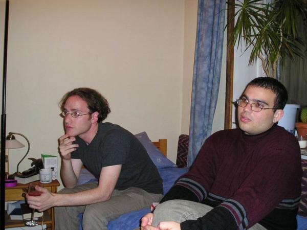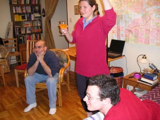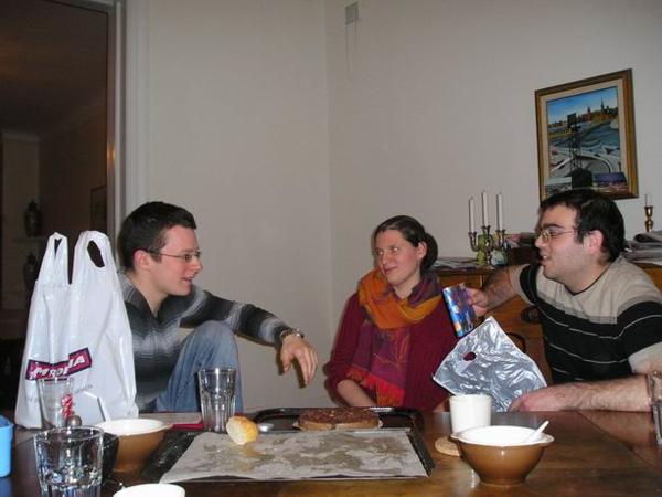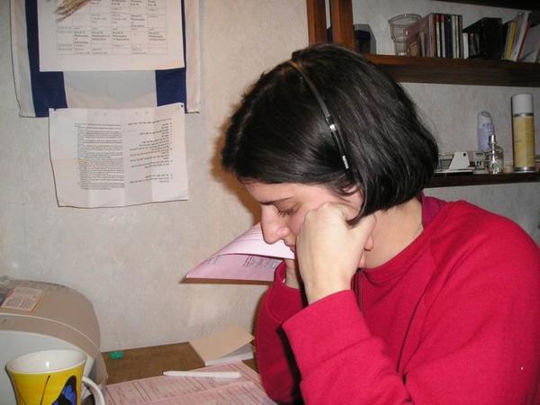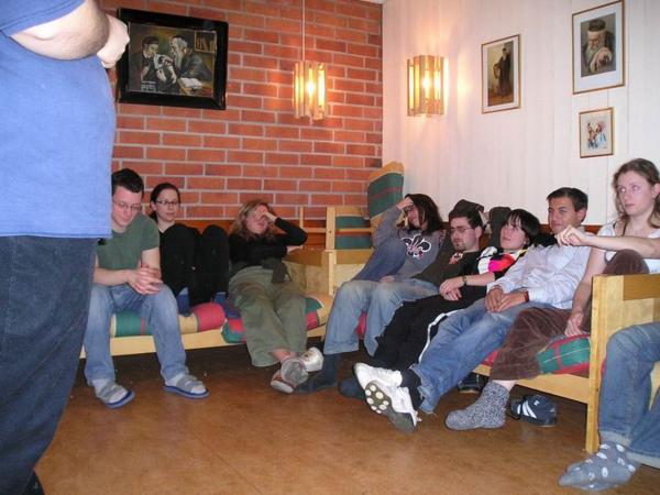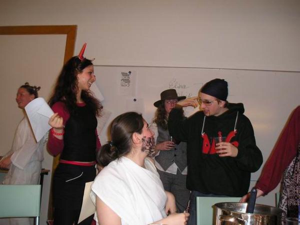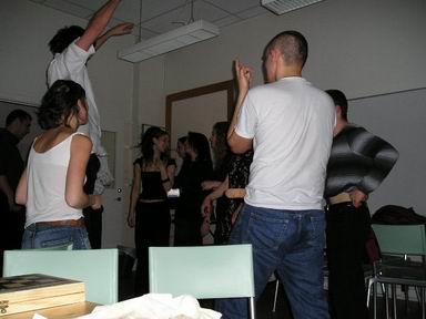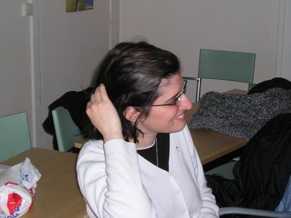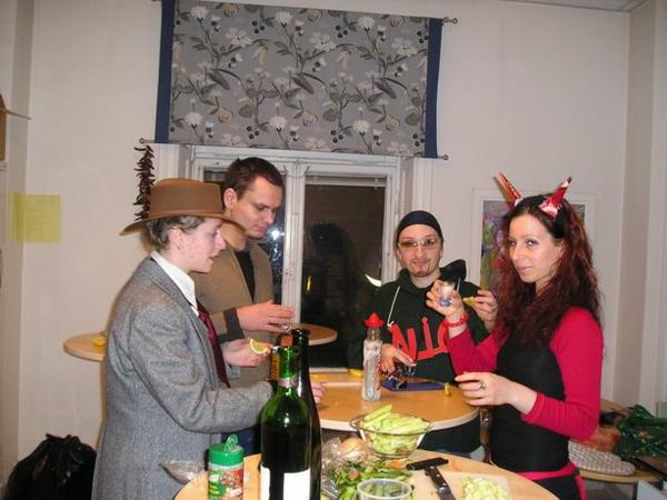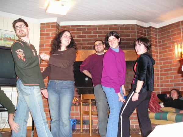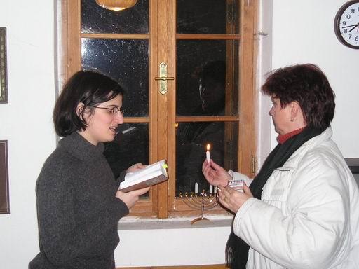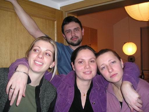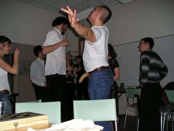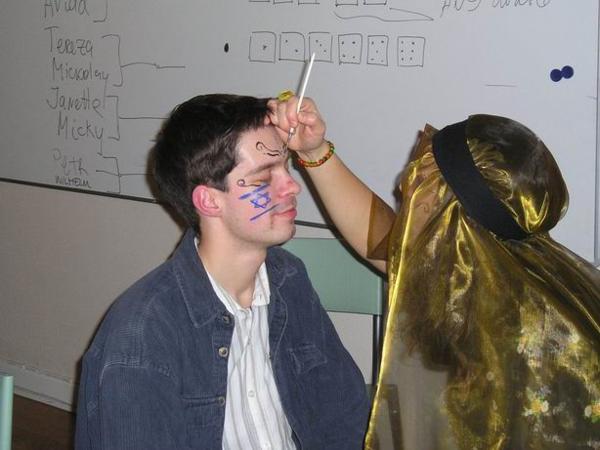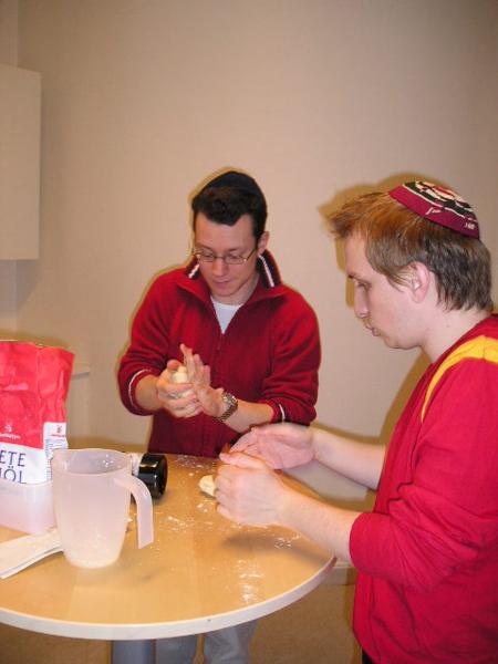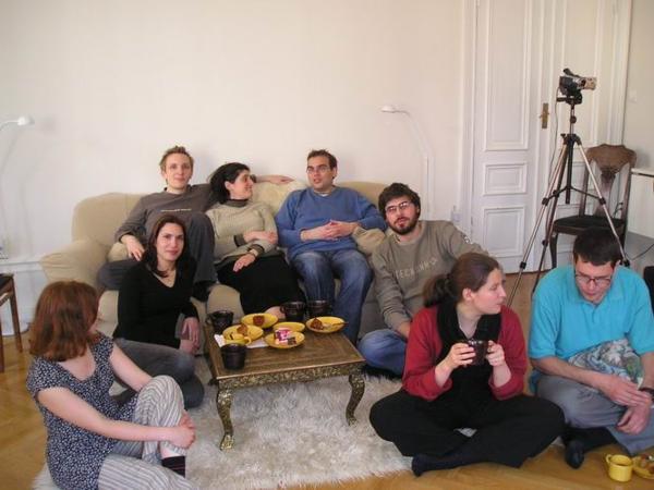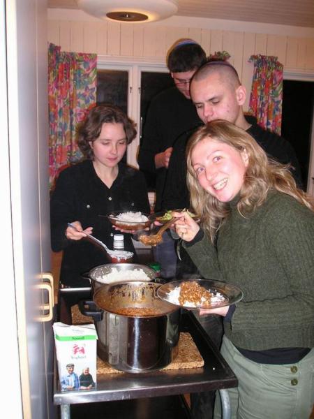 Orázky v této "kapitole" jsou z posledního víkendu našeho zimního semestru.Havdala (drobný obřad, kterým se ukončuje šabat)Lena čte jidiš modlitbu pro dobrý týden "Gott fun Avrohom"Barbara nám mluví do duše:-)Clary a Elina odborně připravují tuňákovou nápň - divili byste se, s čím vším se dají palačinky jíst.Zleva Ester, Elina, Yael a JeanetteTorkel se synem a SašaPři hře "Tradition" (TM), což je něco jako "O poklad Anežky České" se židovskými otázkami. Je to opravdu lahůdka. Chcete-li získat bod, musíte odpovědět na otázky jako: Která biblická postava se oblékala do kozí kůže? Jak dlouhé je pásmo Gaza? nebo Kolik svíček se celkem zapálí během svátku Chanuka? - Hardcore:-)Miki jako "Marek Eben"Yael ve stejné roliLena a Clary při konzumaciTorkl se synemNa konci večírku se na chodbě objevil zvláštní úkazktery se nakonec podarilo vysvetlitOvšem pořád to nebylo nic proti tomu, jaké strašidlo jsem byla já. Poslední dobou jsem neobyčejně zelenkavá v obličeji. Už aby bylo jaro:-)