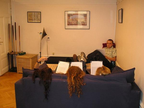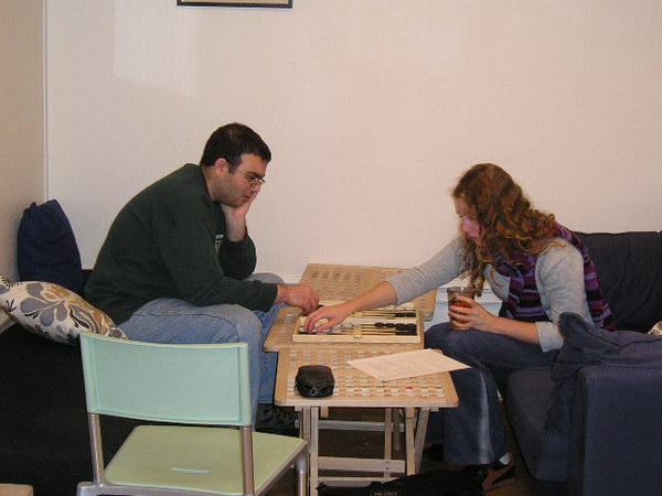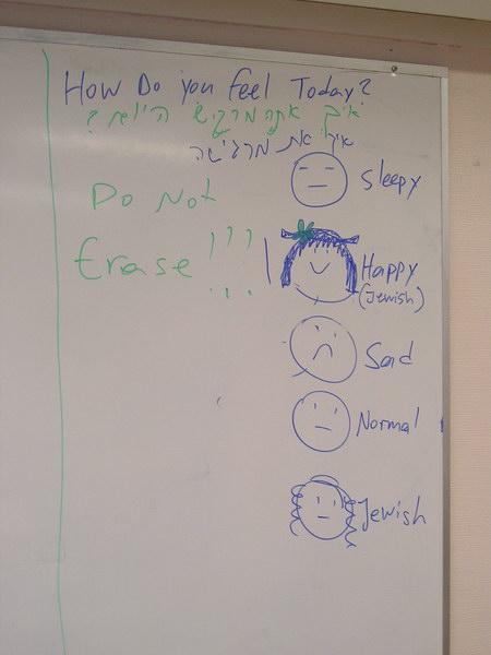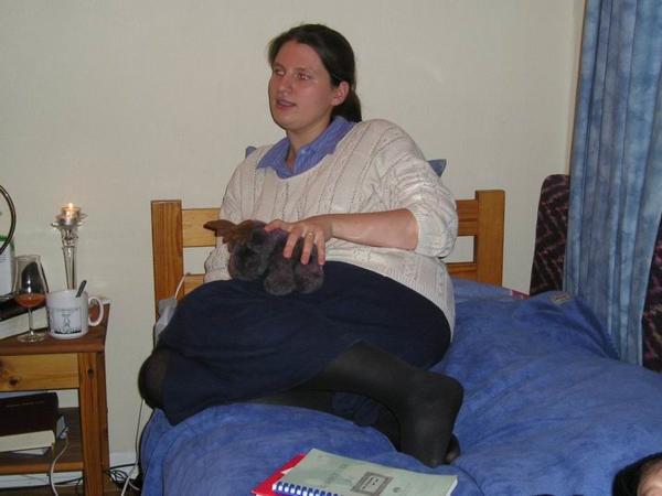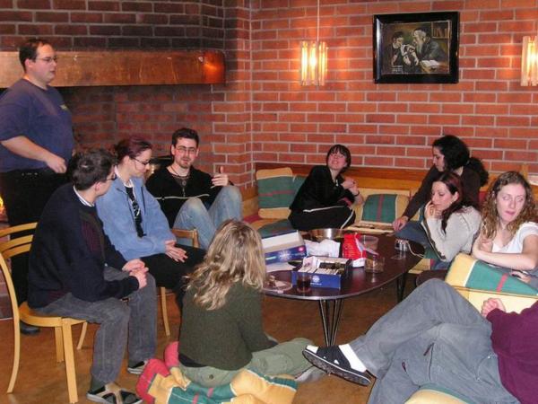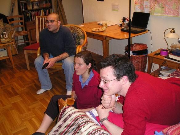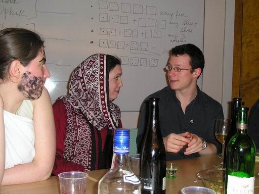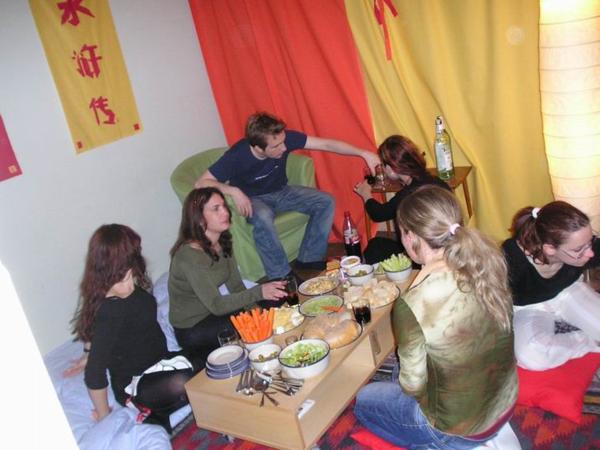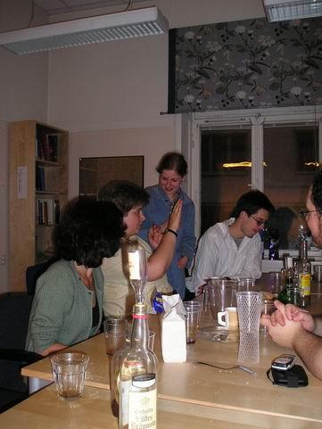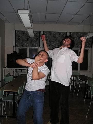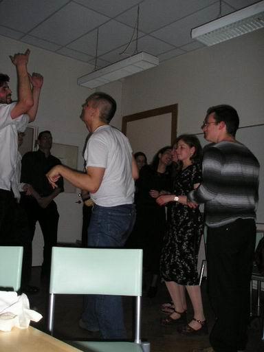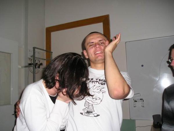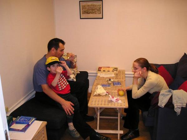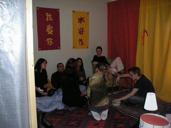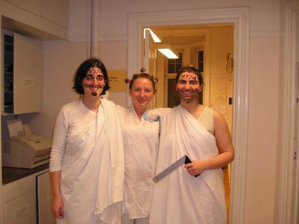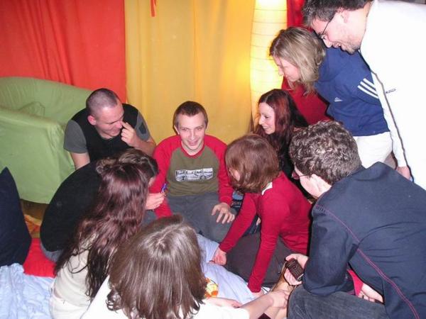 Orázky v této "kapitole" jsou z posledního víkendu našeho zimního semestru.Havdala (drobný obřad, kterým se ukončuje šabat)Lena čte jidiš modlitbu pro dobrý týden "Gott fun Avrohom"Barbara nám mluví do duše:-)Clary a Elina odborně připravují tuňákovou nápň - divili byste se, s čím vším se dají palačinky jíst.Zleva Ester, Elina, Yael a JeanetteTorkel se synem a SašaPři hře "Tradition" (TM), což je něco jako "O poklad Anežky České" se židovskými otázkami. Je to opravdu lahůdka. Chcete-li získat bod, musíte odpovědět na otázky jako: Která biblická postava se oblékala do kozí kůže? Jak dlouhé je pásmo Gaza? nebo Kolik svíček se celkem zapálí během svátku Chanuka? - Hardcore:-)Miki jako "Marek Eben"Yael ve stejné roliLena a Clary při konzumaciTorkl se synemNa konci večírku se na chodbě objevil zvláštní úkazktery se nakonec podarilo vysvetlitOvšem pořád to nebylo nic proti tomu, jaké strašidlo jsem byla já. Poslední dobou jsem neobyčejně zelenkavá v obličeji. Už aby bylo jaro:-)