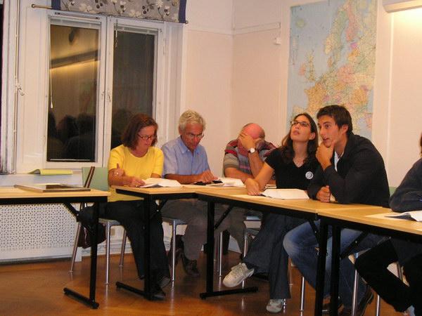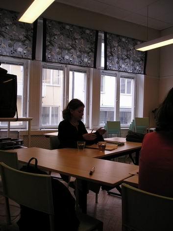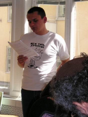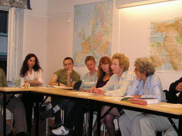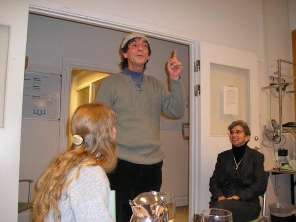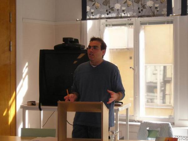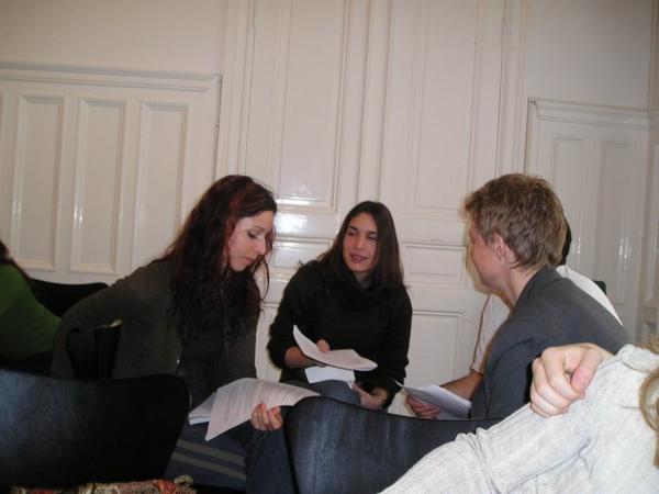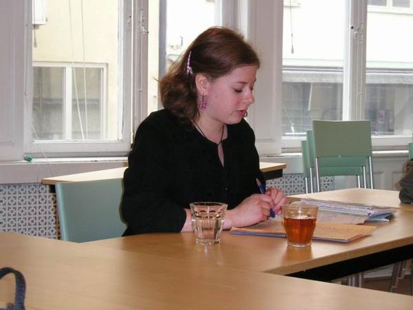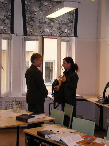 V minulých 3 týdnech jsme místo školy úpěnlivě přemýšleli nad židovským uměním. Zatím se podívejte na pár fotek, které sem dávám hlavně kvůli svým spolužákům. Pro vás příští týden napíšu o festivalu Month of the Arts článek, ve kterém vám všechno podrobně popíšu./Three weeks of Month of the ArtsAgata a Petr v Kulturhuset před promítáním prvního filmu/Before the first filmMaďarský režisér Péter Forgácś (muž velkých gest) při promítání svěho filmu/Discussion with Péter Forgácś in Dramatiska InstitutetMiki - židovský film ho opravdu dostává/Respect...!Chavruta s Pétrem Forgácśem/Chavruta with Péter ForgácśBarbara se svým nezdolatelným optimismem/Shall we study Moshe in Rabbi Akkiva´s Academy or Rabbi Eliezer and jumping carob trees?Mírně z míry vyvedený Péter Forgácś po té, co jsme ho k jeho velkému překvapení posadili na hodinu nad stránku talmudu/I am just experimenting...Barna a Agata při diskusi/Barna and Agata during a discussionBjörn, nenápadný muž s kamerou/Björn, the man behind the cameraPo koncertu izraelské skupiny Habreira Hativit. Vypadám trochu ztuhle - měla jsem housera, ale koncert se se mi moc líbil./After the concert of Habraira Hativit (drumming in the air)Dílna s frontmanem Habrejry Shlomem Barem (jsem dívka k rytmu zrozená)/Drum workshop with Shlomo BarShlomo Bar se svým svérázným projevem a zoufalou snahou naučit promrzlé seveřany zpívat a bubnovat s orientálním zápalem/Shlomo Bar "Stop thinking and drum"Budeme si hrát na dvoupatrovýho brouka?/Self-explanatoryJeden z mých největších kulturních zážitků - desetikilový bochník poctivého tmavého chleba, který s sebou přivezl Valtsův kamarád Andrij z Lotyšska/Andrij´s magic 10-kilo loaf breadDiskuse o občanské statečnosti v židovském muzeu ve Stockholmu/ Discussion about civic courage with Barbara, Göran Rosenberg and Arne RuthPoslední týden umění byl věnovaný hlavně literatuře. Četli jsme biblické příběhy a porovnávali jejich zpracování v moderních románech a ve výtvarném umění. Většinu programu davali dohromady Marion a Ophir, kteří jsou na obrázku/Marion and Ophir during one of the literature sessionsJedna z chavrut. Paní s baretem je Ophirova žena Sara/One of the chavrutasDalší/Another oneA ještě jedna - já sem teď musím dávat obrázky všech, protože moji spolužáci dávají odkaz na mou stránku svým známým a pak si mi stěžují, že jsem na web nedala "tu fotku, kde jsem já"/And another one.Marion při jedné z večerních přednášek./Marion durin one of the lectures.Barbara a David Zisenwine, který nám celý týden dopoledne přednášel o židovském vzdělávání.Bylo to moc fajn./Barbara and David Zisenwine during the "Kain and Abel" eventRůzní jiní diváci/Spectators...Hudební vložka/A couple of songsJoseph Sherman při přednášce o Singerovi/Joseph Sherman during his lecture in NalenTo, co není vidět je zpěvačka Basia Frydman, která zpívá jazzové a jiné evergreeny v jidiš - no každý máme nějakou charakterovou zvláštnost/The person in the dark that is barely visible is Basia Frydman - Mein hertz gehört zum taty...Příští obrázky budou o tom, jak do Stockholmu pomalu a nejistě přichází jaro/The next pictures will feature the humble and timid begining of Stockholm spring
