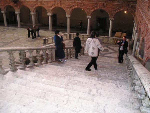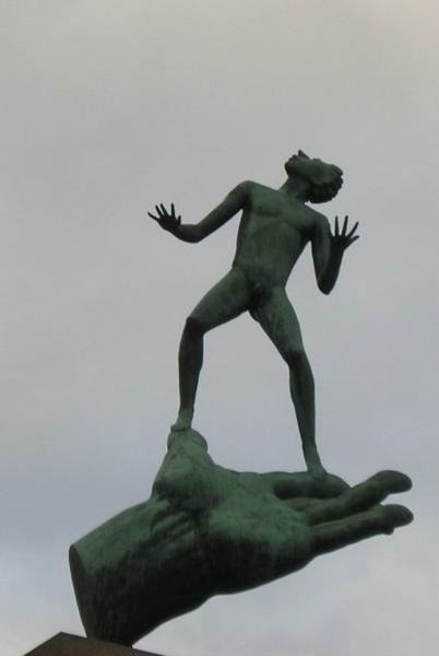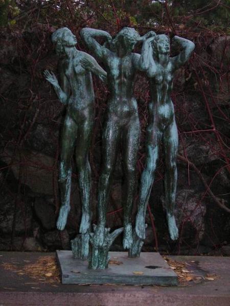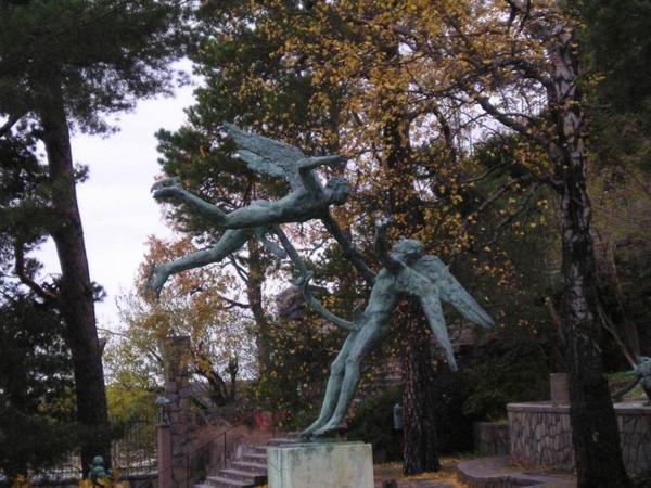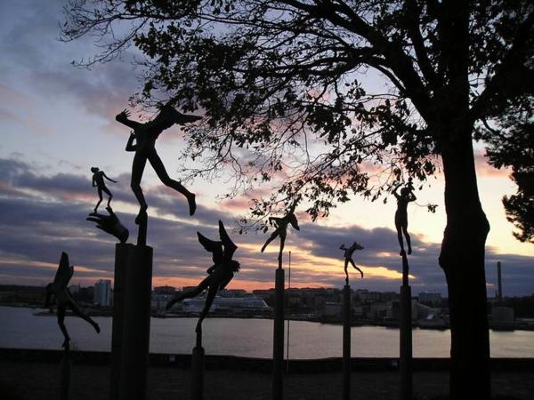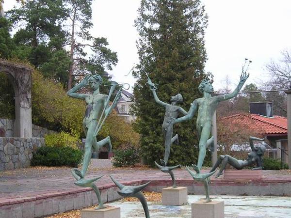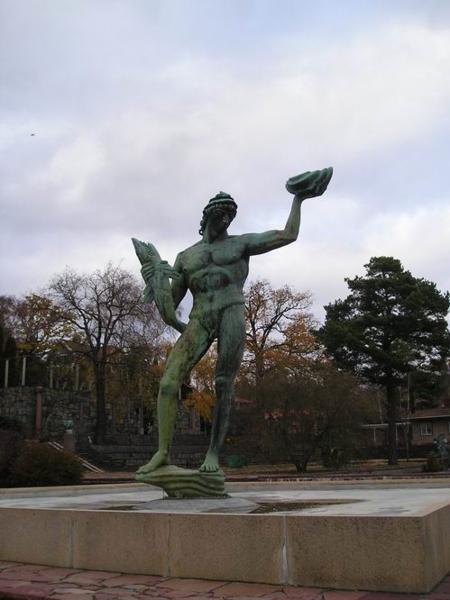Stadshuset - Stockholmská radniceVe Stadshusetu zasedají nejen stockholmští radní (je jich 101 a z toho je 53 žen),ale také se tu v této "Modré hale" (která je ve skutečnosti červená) každý rok koná slavnostní večeře při příležitosti udílení Nobelových cen. Pokaždé je tu "narváno" a každý z hostů, včetně krále a jeho rodiny, má k dispozici pouze 60cm stolu.Všichni držitelé Nobelových cen sestupují k ostatním těmito velmi dlouhými schody, které jsou schválně tak mělké, aby se při cestě dolů nemuseli laureáti dívat na nohy a mohli kráčet hrdě s hlavou vztyčenou a vesele kynout přítomným hostům.Takhle vypadá věž radnice zespodaV jednom ze slavnostních sálů je zlatá mozaika znázorňující bohyni jezera Mälaren, které svými četnými chapadly vytváří velkou část Stockholmských zálivůVšechny následující obrázky jsou z mého výletu do Millesgarden, někdejšího domova slavného švédsko-amerického sochaře Carla Millese a jeho ženy Olgy.Dnes je Millesgarden místem, kde žijí Stockholmští anděléJednoho z nich zrovna kousnul komár do nohyJiní andělé si vyjeli na bruslíchJedna z nejznámějších Millesových soch - "Boží ruka""Faun""František""Poseidon"Tohle se mi nepodařilo identifikovat, ale moc se mi to líbí. Je to asi něco mezi Noemovou archou a Jonášem a velrybou.Tři umělci - muzikant, malíř a sochař (za lepšího počasí stojí uprostřed fontány)Podle mého jedna z nejlepších - "Bůh otec na duze." Bůh je ten nahatý pán nahoře. Dole stojí anděl, který mu hází hvězdy. Na fotce je jen studie. Opravdová 24metrová socha stojí při ústí Stockholmského přístavuBůh otec na duze v detailu.