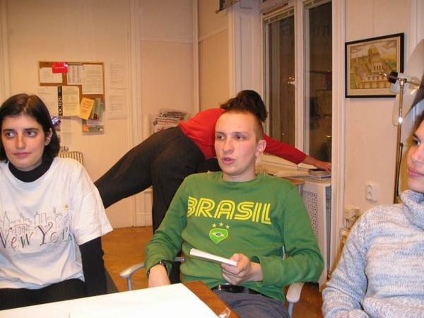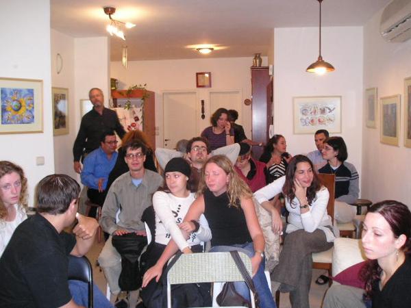 Barbara Spectre - naše paní ředitelka. Úžasná žena s úžasnými vlasyAviadClary a SoňaMiki, na kterém je dobře vidět, jak zbožně posloucháme naše učiteleSoňa a MikiČuk a GegTorkelAviad a YaelPilná studentkaChavruta-Agata, Adam a Aviad. Vykukující jarmulka je Nickova. V pozadí Yael a Karin;(O tom, co je to "chavruta", bude příští článek v Zápiscích)Chavruta-Agata a AviadChahvruta-Elena a ja (velmi nenaranžované foto). Všiměte si mého dramatického gesta levou rukou.Chavruta-Tanya a Adam, Agata a BarnaVelmi unavená chavruta (tmavé vlasy Natalia, tmavé blond Yael, světlé blond Elina, vzadu Miki)Kuchyňská chavruta-Janett, Alan, Walts, Slečna v džínách. Stojící pán je Jicchak Benbaji, kterého máme na "Základy židovské etiky"O přestávce v kuchyni-Henrik, Tanya, Lena a Jicchak BenbajiDen otevřených dveří v Paidei 1Den otevřených dveří v Paidei 2. Mládí a stáří studuje společně:-)Den otevřených dveří v Paidei 3Někdy nevíme, co bysme roupama dělaliAhoj:-)