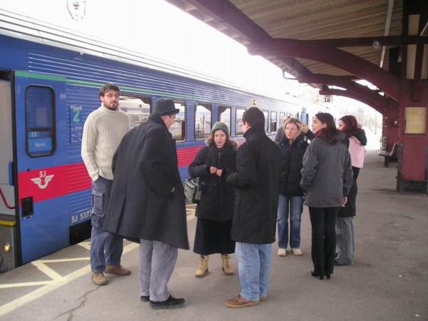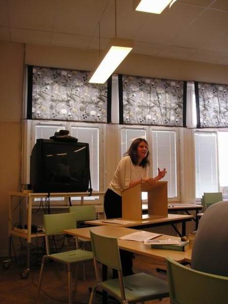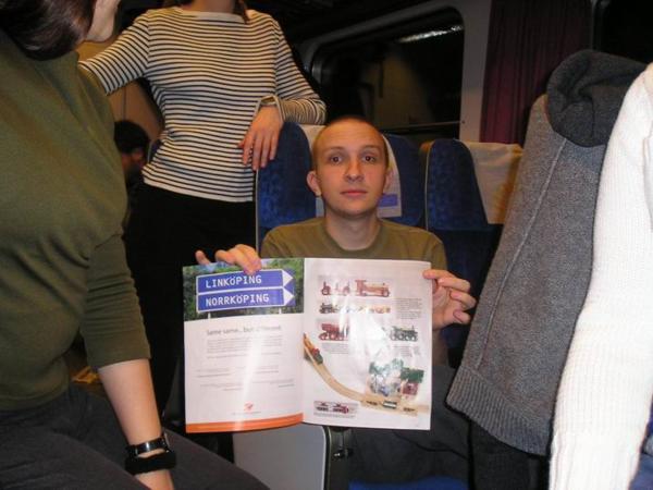 V předposledním týdnu zimního semestru jsme se vydali na šestihodinovou vlakovou výpravu na jih Švédska do univerzitního města Lund. V tomto městě, které má uprostřed temné severské zimy podle mého laického pozorování asi o hodinu a půl delší světlou část dne než Stockholm, jsme tři dny chavrutovali s místními studenty teologie a všech možných jiných přidružených oborů nad židovskými a křesťanskými texty.Přiznám se, že se mi do Lundu moc nechtělo. Přesně týden po příjezdu z Izraele jsme se měli znovu štrachat na poměrně dlouhou cestu, znovu se družit s cizími lidmi, znovu se představovat a znovu studovat texty:-). Utěšovala mě jen myšlenka, že alespoňbpoznáme trochu švédského "venkova." Kromě toho jsem si pořád opakovala, že jsem nevděčná, když tu nestydatě využívám stipendia, které mi umožňuje sedět celý rok nad knížkami a nestarat se o účty, a ještě si stěžuju, že mě ten (velmi pohodlný) studentský život unavuje:-)Dalším důvodem, proč se mi nechtělo hýbat se z místa, byly chmury, které se mě zmocnily při beznadějném vyhlížení slunce v temné švédské zimě. Takhle to z vlaku vypadá krátce po půl devaté, kdy vychází slunce.Ne každý ale bral náš výlet tak tragicky, jako já. Například Miki ve vlaku pilně studoval systém švédských železnic,Barna se věnoval niterným kontemplacím,Petr doháněl spánkový dluhstejně jako Natáliaa ostatní si o delší zastávce našeho vlaku vylepšovali náladu lapáním slabého denního světla nebo vdechováním nikotýnu a dehtu.Studijní část našeho výletu byla ale nakonec docela příjemná (což podle mé zkušenosti u "mezináboženských dialogů" nebývá vždy pravidldem). Na obrázku je Jasper Svartvik, který celé setkání připravil.Ve třídě se studenty z LunduVětšinu času jsme trávili v chavrutě, ale z toho obrázky nemám. Takže ještě jeden obrázek ze třídyKdyž jsme zrovna nic nestudovali, procházeli jsme se po městě. Lund je skrz na skrz sudenské město. Na ulici téměř nepotkáte nikoho, komu by bylo víc než třicet:-)...A všichni jezdí na koleStudentská půjčovna fraků.V Lundu není mnoho památek. V podstatě je tam jen jedna. Ale zato pořádná - Domkyrkan, katedrála z 12.století.V kryptě katedrály je na jednom ze sloupů "přilepená" manželka obra Finna. Obr Finn postavil katedrálu pro svatého Lorence. Jako odměnu si vyžádal oči tohoto světce. Lorenc mohl svůj zrak zachránit jen tehdy, kdyby uhodl, jak se obr jmenuje. Když se zoufalý světec už už loučil se svým zrakem, zaslechl paní Finnovou, jak říká svému synovi:"Jen neboj, táta Finn ti večer přinese na hraní nové oční bulvy." Lorenc tedy nakonec dokázal na Finnovu otázku odpovědět. To obrovu rodinu rozčílilo natolik, že se všichni tři rozběhli do katedrály a chtěly ji zničit. Jakmile se ale dotkli jejích sloupů, všichni tři zkameněli:-)V katedrále je kromě jiného také orlojTo, co na tomto obrázku nevidíte, je jinak velmi pěkné presbytériumŠvédové mají velmi zvláštní zvyk vystavovat během adventu na všech možných místech "menoru." V Domkyrkan stojí menora hned před jesličkami...Kromě katedrály je v Lundu spousta moc pěkných starých domů.Na všch zbývajících orázcích je naše "rozlučková párty."