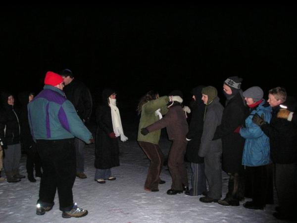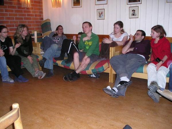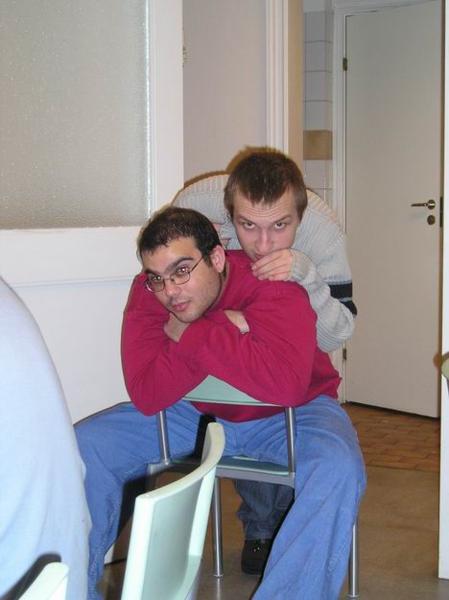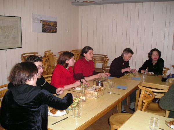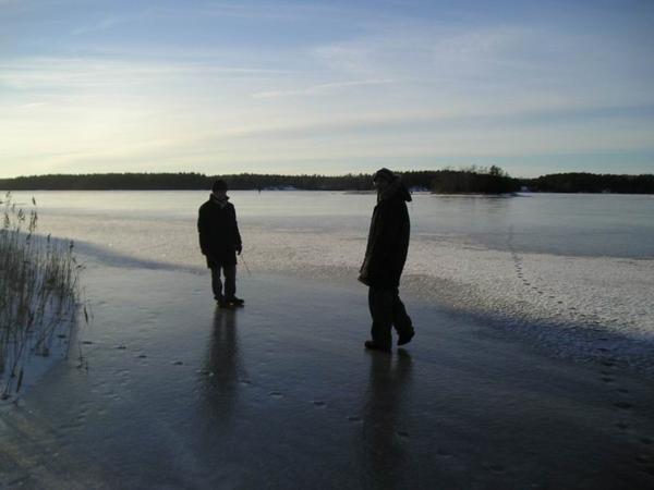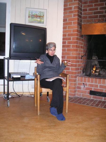 Minulý týden jsme s mými spolužáky strvili víkend v Glämstě, což je takové vesnické rekreační středisko, které vlastní švédská židovská obec./Our trip to Glämsta, 16th-18th January.Glämsta je teď stejně jako celé Švédsko zamrzlá/Frozen river, very unusual (photo Miki).a plná červeně natřených domů/Red houses, also very special:-)V okolí Glämsty mají Stockholmané víkendové chaty./ Another red house.Mít červenou chatu v stockholmském souostroví je sen každého stockholmana./One more.(já bych jí taky nepohrdla)/Really, never say "no" to a red house.Takhle jsme vypadali, když jsme přijeli./Arival of the first group.Do Glämsty jsme se jeli trochu učit a trochu odpočívat. Nejvíc obrázků mám z neděle. Ze soboty mám obrázky až z večera./Before Havdalah on frozen sea 1.To jsme my na zamrzlém moři (!) na konci šabatu před havdalou./Before Havdalah on frozen sea 2.Benji a Tanya při Havdale (všiměte si, jaká je tam kosa)./Tanya and Benji during Havdalah.V Glämstě se po havdale tradičně pořádají závody v objímání - to tam nepochybně zavedl nějaký Američan./Havdalah hugging race (I bet it is an American invention).Agata v závodech zjevně našla zalíbení./Agata obviously liked it:-)Henrich, já a zachumlaná Barbara./Henrich, me and wrapped up Barbara.Hvězdy vycházejí nad zamrzlými studenty./Stars rising over Paideia.Kuřáci si po šábesu zapalují. Já jsem mezi nimi z výchovných protikuřáckých důvodů:-)/After shabbat smoking chavrutaTo bílé na obrázku je můj dech, to ostatní je naše chaloupka./If you take a picture in Sweden at this time of the year, hold your breath...Alan a Valts/Alan and ValtsBarbara při přednášce (vypadá trochu jako upír, ale ve skutečnosti je fakt hodná:-)/ Doesn´t Barbara look a little bit like a vampire here? (with all the respect)Když jsme se doučili, hráli jsme celou řadu většinou velmi znepokojivých her./ The night of games begins.Mezi tím vším jsme sem tam jedli/Clary´s "Ha-motzi"odborně vlastnoručně vyrobená jídla./Before we started to dig in.Chili con carne sin carne aneb všudypřítomná vegetariánská náhražka masa./Chili con carne sin carne - go vegee, go.Ačkoliv na tomhle obrázku vypadají všichni trochu zaskočeně, bylo to fakt moc dobrý./Hot, eh?Ráno jsme měli egalitariánskou bohoslužbu, večer jsme hráli egalitariánský Twister/ Slow beginning of TwisterNení to vidět, ale uprostřed toho chumlu jsou opravdu zajímavé kreace/What is your twenty-two?Kdo by si pomyslel, že tomu všemu velela sama Barbara./Would you believe that Barbara was the boss of the whole thing?Mimo jiné jsme hráli také "Mafii."/ "A night" during the "Mafia" game.A najednou bylo 5 ráno/ At 5 am.Začínající západ slunce nad zamrzlým mořem v půl druhé v neděli odpoledne./Sunday sunset over frozen sea (photo Petr)Aviad se poprvé v životě odvážil vkročit na zamrzlou vodu (to se člověku v Izraeli hend tak nepoštěstí)/ Aviad´s first time on frozen water.Všichni jsme na něj byli velmi hrdí a říkali mu, jak je statečnej./Aviad and me.Hromadný dvojitý Tulup/Fascinating group figure skating.Barna je silák./ Barna is a strong boy.Švédové jezdí na zamrzlém moři na výlety na bruslích. Místo normálních bruslí mají často jen takové kovové lyžičky s ostrými hranami, které si nasazují na boty./ Swedes on a skate trip.Vyšlo slunce, a tak lapáme bronz./Make the best of the sparse sunJeště jeden červený dům./Sea shore sceneryNa břehu zamrzlého moře 1./ On the frozen sea shore 1.Na břehu zamrzlého moře 2./ On the frozen sea shore 2.Na břehu zamrzlého moře 3./ On the frozen sea shore 3.