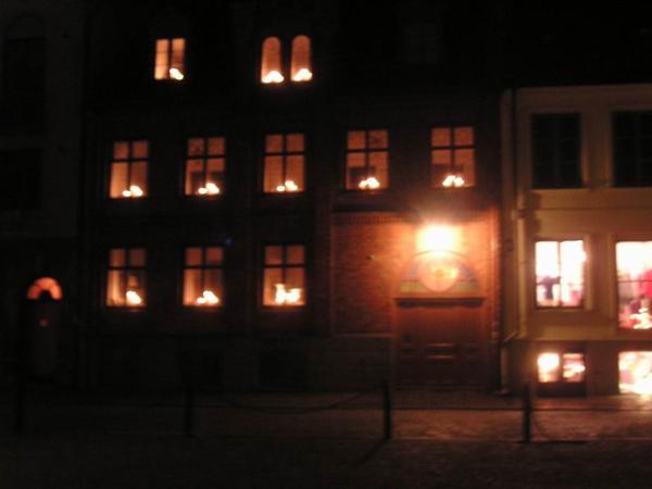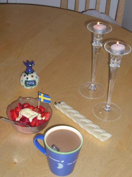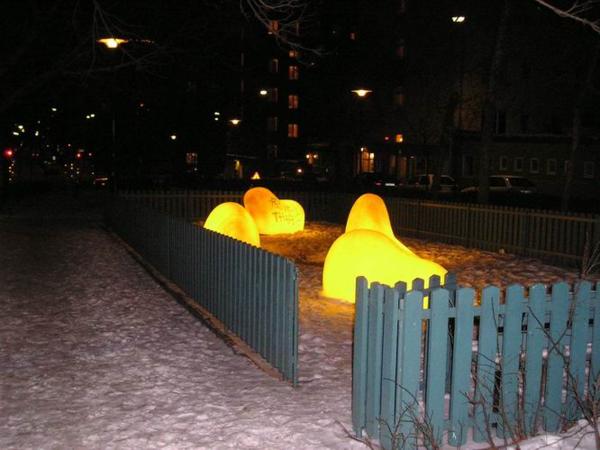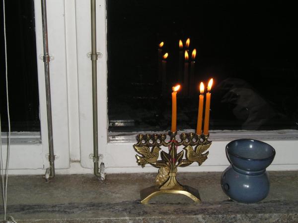 Švédská zima je temná, dlouhá, studená a mokrá. Takhle to vypadalo 14.12. v 3 hodiny odpoledne v DrottningholmuS tmou Švédové bojují světlem, kterým se obklopují nejen ve svých obydlích, ale hodně také vně svých domůČasto světla dávají i na čistě symbolická místa, kde lampy neslouží žádnému praktickému účelu, jako například za oknoV restauracích a kavárnách se v zimě téměř všude na stoly dávají svíčky (tohle je u nás ve škole v jídelně, jen tak mezi námi, při pohledu do našich talířů - už víte, proč jsem tolik zhubla?)Na mnoha místech je světlo i součástí pouličního uměníBěhem adventu si Švédové dávají do oken sedmiramenné svícny.Svícny jsou opravdu úplně všude.Dokonce je můžeme najít i v kostelech před jesličkami, což je pro židovské oko docela legrační (tento obrázek je také mezi fotkami z Lundu)Svíčky a rúzněčetné svícny jsou samozřejmě velmi častým obchodním artiklem na vánočních trzíchV jednom okně jsem před Vánoci našla tento výjev. Chanuka jsou ve Švédsku se svými "pouhými" osmi dny okenní světelné show opravdu slabá konkurence. Možná se to takhle někdo snaží trochu dohnat.U nás doma v Solně na druhý předvečer Chanuka13.prosince slaví Švédové svátek svaté Lucie. V tento dem městy obchází procesí dětí s bílými kuklami na hlavě (což bez přehánění na první pohled vypadá jako pochod Kukluxklanu), v jejichž čele stojí bíle oděná žena s korunou se svíčkami na hlavě. Svátek svaté Lucie je symbolickým začátkem vánočního období. V tento den se hojně jedí "lussekatter", máslové koblihy kořeněné šafránemV zimě se ve Švédsku z pochopitelných důvodů jí hodně sladkého,a pije hodně kalorického - toto je "glögg," svařené víno s rozinkami a mandlemi. (Na talířku jsou vánoční perníčky "pepparkakor.")Vydatný vánoční nápoj "Apotekarnes Julmust"Nedostatkem světla trpí jak lidé, tak zvířata a rostliny. Takhle po světle touží kaktus v mém pokoji.Ještěže mě maminka zásobuje kaloriemi:-)Švédové mají přísloví: "Není špatné počasí, je jen špatné oblečení." Jedním ze způsobů obrany před nepřízní počasí jsou rukavice z dvojitou vložkou.Stockholmské ulice jsou v zimě někdy až trestuhodně zamrzlé a nebezpečné.Proto někteří lidé chodí na procházky s lyžařskými hůlkami.V zimních měsících se Švédové různě druží, pořádají různé trhy...Zpívají a tak.My se taky scházíme. Jíme, koukáme se na filmy, na "Přátele" a tak (Yael, Aviad a Clary u nás doma)Když už nevíme "cobysme roupama," vymýšlíme různé společenské hry. Tady například na sebe zkoušíme mluvit různými slovanskými jazyky bez překladu (zprostředka: Miki mluví bulharsky, vedle něj Soňa slovensky, nad ní Elina rusky, stejně jako pod ní Tanya a nad ní kudrnatý Henrich. Petr v bílém mluví česky, dlouhovlasé Agata a Natalia sedící zády k foťáku mluví polsky, vedle nich skoro neviditelná Lena rusky a skoro plešatý Mikolaj vedle Mikiho polsky.