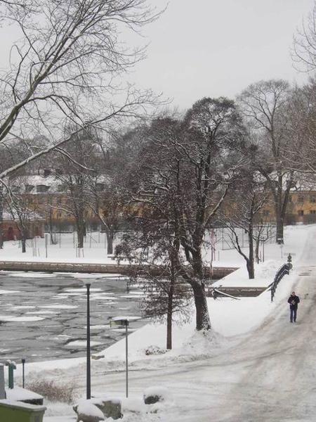Salsjön 1Salsjön 2Salsjön 3Otužilé kachnyKouzelník mrázPoznáváte superkachnu skorohusu z podzima?Zamrzlý Ulvsundasjön, část jezera MälerenNybrovikenSkeppsholmenKastellholmenNesmělé stockholmské polední slunceNevídaně jasné a velké slunce zapadajícíTady na mě spadla z jedné střechy nálož sněhu:-)V okolí Stockholmu je celá řada chráněných krajiných oblastí. Do jedné z nich do komunu Tyresö jsem se jednou, (chytře) ve sněhové válnici, vypravila na výlet.Není divu, že Švédsko je kolébka orientačního běhu. Když se člověk brodí v pološeru půlmetrovým sněhem hustým lesem, velmi lehce se rychle ztratí.Oplývám velmi rozvinutým nesmyslem pro orientaci, a tak jsem se v hustém lese, sama, opuštěná, ztratila hned po první hodině cestyKdyž jsem po další půlhodině narazila na neočekávaný shluk domků a konečně se zorientovala, zjistila jsem, že jsem asi 2 km jihozápadně od místa, ze kterého jsem před hodinou a půl chtěla vyrazit na sever. Trochu mě to znepokojilo...Ale zase jsem toho spoustu viděla:-)Učebnicová švédská vesnička 1.Učebnicová švédská vesnička 2.Už několikrát jsem zmínila, že ve Švédsku je všude voda. To může být v zimě nebezpečné. Kvůli vysoké sněhové peřině si nemůžete být nikdy jistí, co přesně vás čeká tam, kam šlápnete.Ostrůvek Fiskarholmen v nejlepším okamžiku sněžení (škoda, že to na fotce není pořádně vidět. Fakt byl samec:-)Můstek spojující Fiskarholmen s pevninouA na závěr vám představím další zimní kalorickou specialitu Švédska. Tato lahodně vypadající ovšem již méně vábně chutnající jakokobliha se jmenuje "Samla." Je to takový hodně hutný až chlebový sladký rozkrojený vdolek naplněný máslovým krémem. Není to špatný, ale dá se bez toho žít:-)