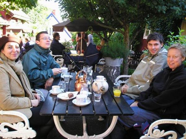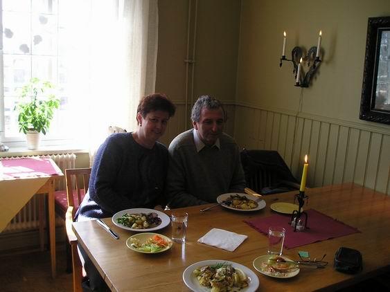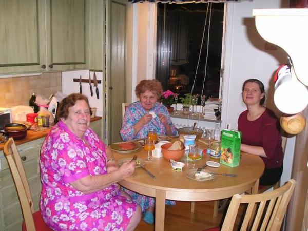 V prvním týdnu pesachových prázdnin za mnou přijeli na návštěvu rodičeNavštíví-li někdo Stockholm, musí samozřejmě nutně ochutnat borůvkový koláč (uvítací dezert)vypálit několik svíček (konec našeho společného šabatu)vypít hodně teplého čaje (v kavárně na výletě v Sigtuně - všiměte si, jak fikaně je čaj v konvici chráněn před vychladnutím)prohlédnout si spoustu červených domků (na výletě do Vaxholmu)a samozřejmě projet se lodí (máma na lodi do Vaxholmu)Moji rodiče se neudrželi a hned jak přijeli, začali mi opravovat a cídit celý byt:táta nám spravil koště, odlakoval a nalakoval stůl, který jsem zničila neopatrným žehlením, přišrouboval rozbitou zásuvku a opravil mou postelovou lampičkuMáma se zase neudržela, a když jsem opustila na několik desítek minut byt, umyla všechna okna, vysprchovala a přesadila kytky, přerovnala hrníčky podle velikosti...napekla na pesach macelokš, specielní buchtu z macesové moučky, mrkve, vajíček a cukru - zkrátka znovu se o mě začali starat, což mě trochu zaskočilo, ale zároveň samozřejmě potěšiloKromě toho ale u mě měli normální odpočinkovou dovolenou a objevovali počátky jara ve StockholmuJeli jsme na lodní výlet do Stockholmského souostrovíCestou jsme potkali benzínovou pumpu pro loděLodní rybí bufet.Loď - převažečka aut z břehu na břehNa lodiTáta s všudypřítomnou kamerouV kavárně na výletě do SigtunyStále smutně zamrzlé jezero MälerenZbytky sigtunského kostela sv. Petrastejné zbytky z druhé stranyTáta nad kafemMístní biografNaše sederová mísa (jen tak mimochodem, maminka se vínem tolik ojínila, že na konci sederu vykřikla "Příští rok...o slepičí krok" - já pořád říkám, že 4 sklenice jsou mocJezero Mäleren v místě, kde se vlévá do moře (vyfotila jsem zvláště pro vodáky - tady by se udělal i Honza Krušina)Švédský král Gustaf v mládí (fotku jsme objevili ve stockholmském starém městě)Nejstarší stockholmské dveře (bez legrace)Na výletě do Skanzenu ve staré škole (všiměte si mapy na pravé straně fotografie)Na výletě do přístavního města Nynäshamn,kde se mimo jiné ukázalo, že nemožné se stalo skutkem - Švédsko kveteToho klacíků a kytiček-milující maminka využila k nenásilné zátišové fotografiiZávěrečný slavnostní oběd