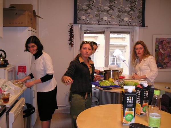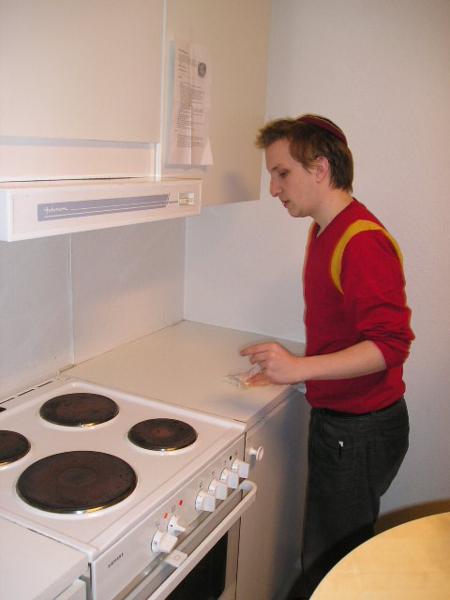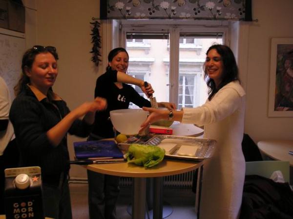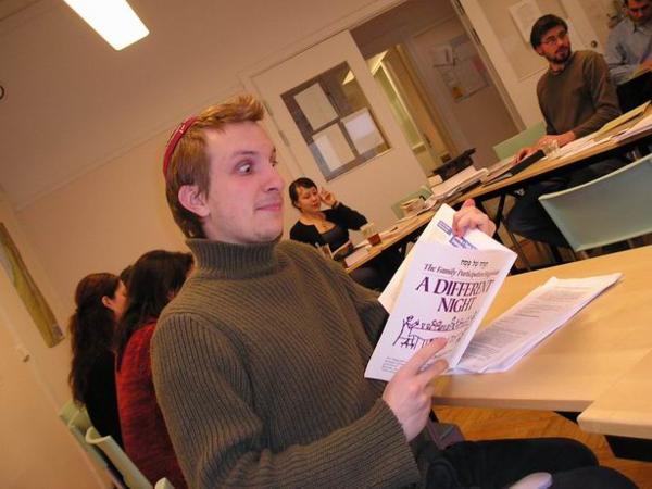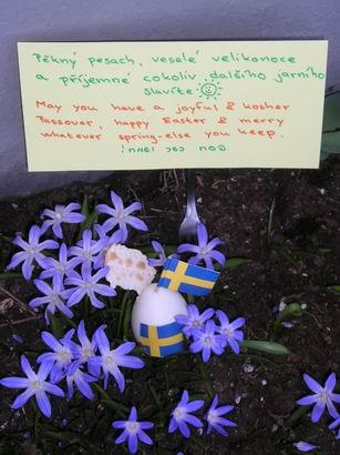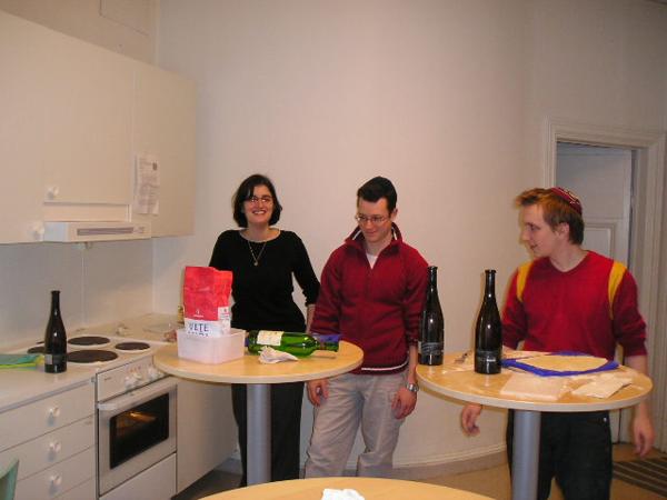 Krátce před Pesachem přijely do Stockholmu babička a teta AliS rodinnou návštěvou přijely o počátky jara,a tak jsme začly vařit různé zdravé věcicelá příroda jako by čekala na povel a s prvním silnějším sluncem se začala rozpukata kvéstVe škole je ale pořád stejně. Toto fotka Mikolaje při referátu o kabale během hodiny hebrejštiny. Vypadá velmi učeně (fotka i Mikolaj). Proto jsem je sem vystavila.Tři týdny před Pesachem (židovským svátkem nekvašených chlebů) jsme začali chavrutovat na toto téma. Na tomto obrázku je Miki v upřímném zaujetí interaktivní pesachovou Hagadou Shalom Hartmanova institutu.A zde Barna ve vytržení přednášejícím Ophirem a Petr ve starostlivém zadumáníMiki při pesachovém košerování naší školní kuchyněProtože ve Švédsku stojí krabička macesů (nekvašeného chléba) nekřesťanských 80 švédských korun (288 našich), rozhodli jsme se vyrobit si nekvašený chléb vlastními silamiNa macesy člověk potřebuje jen mouku a vodu, ovšem aby se z nekvašeného chleba nestal chléb kvašený, musí se těsto smíchat, zpracovat, vyválet a dát do trouby během 18 minut. Když se to nestihne,je chléb už kvašený a tudíž na pesach nepoužitelný.Ovšem díky tomu, že jak Miki tak Barna pracovali nemalou část svého mladého života v izraelských kibucech, zorganizovali naši výrobní linku velmi efektivně, a tak jsme vše krásně stihli. Ale málem jsme se při tom sežrali.Na závěrečné fotce se ale samozřejmě usmívámeA toto je tedy výsledný "chudý chléb, který jedli naši předkové v egyptské zemi"Pěkné, ne?Během celého pesachu máme ve škole prázdiny. Jak se volno blížilo, začali se moji spolužáci pomalu vytrácet a vracet domů. A tak poslední den před začátkem pesachového volna nás ve škole bylo jen 7a ráno během chavruty jen "statečných čtyři"Ophir nám to ale vynahradil a během poslední hodiny, která byla celá o Pesachu,ocenil naši vytrvalost výborným izraelským vinným džusem,kterým nám připil na zdraví.My židé slavíme jaro tím, že jak troubové uklízíme a osm dní Pesachu jíme místo normálního chleba jen velké nekvašené sucharyŠvédové zase kupují čokoládová vejce a domy si zdobí větvičkami s barevným peřímAť už vy děláte na jaře cokoliv, mějte se u toho co možná nejlépe