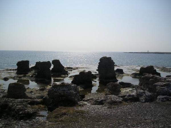 Gotland je zhruba 120km dlouhý ostrov ležící na jihojihovýchod od Stockholmu. Malá tečka nad Gotlandem je maličký ostrůvek Farö, skutečný konec světa.Mezi Gotlandem a pevninou jezdí denně několik trajektů. Cesta mezi Nynäshamnem (60km jižně od Stockholmu) a Visby, hlavním městem Gotlandu, trvá zhruba 3 hodinyNa trajektu je celkem fryšno. Silný vítr je dobrou přípravou na nepřetržitý gotlandský fujavec. Za zmínku stojí také všudypřítomní nádherní beránci v pozadí.Staré město Visby je obehnáno masivní zdí.Uličky starého města VisbyNa konci této je stará visbická lékarnaDům v objetí stromuRuiny kostela svatého Petra ve VisbyPohled na Visby z parku Almedalen. Dvě černé věže v pozadí patří katedrále svaté Marie, jedinému kostelu ve Visby, který není ruinou.Kazatelna této katedrály je zespoda ozdobena neobyčejně obskurními andělíčkyHned za hranicemi starého města začíná nekonečné bílorůžovomodré gotlandské pobřežíZa východními hradbami Visby je hromadný hrob 2000 gotlanďanů, které povraždila armáda krále Waldemara v roce 1361 při snaze získat ostrov pro dánskou korunuMezi vší historií žije maličké město Visby (které je velké asi pražská Zbraslav) horkou současností (nálepka na lampě před knihovnou ve Visby požadující osvobození Palestiny)Konec pesachu v úterý večer. To, co mám v pravé ruce, je izraelský grep, který jsem pořídila v místní samoobsluze.Kostelík ve vesnici Näs.Na oltáři tohoto kostelíka byl biblický výjev obětování Izáka. Shodou okolností téma mé závěrečné práce. Sladkokyselá připomínka školních povinností uprostřed prázdnin.Většina silnic Gotlandu je poměrně úzká. Bílé "M" na modrém poli na jejich okrajích označuje místa, na kterých se můžete vyhnout protijedoucím autům. V pozadí statečně šlapající Aviad.Jih Gotlandu je doslova prošpikovaný větrnými elektrárnami (no, není divu)Němí svědkové - vítr fouká na Gotlandu už pěkně dlouho.Okraj zálivu BurgsvikenGotlandská krajina je v mnohém velmi podobná Walesu nebo Holandsku. Velkou část ostrova pokrývají mechovité pastviny, na kterých se pasou ovce, krávy a koně.Většina Gotlandskýh zvířat má hrubou a huňatou srst (i když na těchto koních to zase není tak patrné)Na Gotlandu žije mnohonásobně více zvířat než lidí. Němí tvorové mají proto mnoho specielních práv.Jediný z mnoha gotlandských runových kamenů, který jsem vyfotila (zrovna tenhle je moderní napodobenina, ale nikomu to neříkejte)Kostelík ve vesničce FideSe svérázným vyobrazením nanebevstoupení Krista (to je ta raketka vlevo) a seslání svatého ducha (to je ten unavený holub vpravo).Kostelík ve vesničce ÖjaFreska v kostele ve vesničce Sundre, na níž archanděl Michael váží nezbednou duši krále Jindřicha IIU každého kostelíka je pečlivě udržovaný hřbitov. Každý z nich je v této roční době zaplavený drobnými květy jarních lučních bylin.Většina z nich kvete modře a žlutě, barvami švédské vlajkyTypické gotlandské farmářské stavení z 19. století. Většina těchto domů dnes slouží jako stodoly. V několika ale stále bydlí lidé.Kvůli silnému větru je všechno možné na Gotlandu pokryto lišejníky, které hrají všemi možnými barvami.Zvláštním gotlandským přírodním úkazem je tzv. "raukar," vysoký skalní útvar trčící z mořského pobřeží.Tyto raukary jsou z jižního cípu ostrova z pobřeží HolmhällarPobřeží HolmhällarNa Gotlandu se dříve používala specielní délková míra "Gotlandská míle," která měří zhruba 10km. Všechny staré patníky na ostrově ukazují pouze vzdálenost do hlavního města Visby (kam nakonec vedou všechny místní cesty)Sever ostrova, pobřeží městečka Farösund. V pozadí pobřeží ostrůvku FaröTrajekt mezi Farösundem a ostrovem FaröNa trajektu je-jak jinak-větrno. Příjemnou zvláštností trajektu je, že převáží lidi, kola i auta úplně zadarmo (respektive gotlanďané ho platí ze svých velmi vysokých daní)Jeden z mnoha větrných mlýnů na ostrově Farö (třeba Bergman bydlí zrovna tady)Po celém Gotlandu je mnoho kamenných zídek. Kameny drží pohromadě samy od sebe, není mezi nimi žádná malta.Má věrná koloběžka "Lila"Stará usedlost na severním pobřeží ostrova FaröJeden z raukarů v rezervaci Lauterhorn, FaröA závěrečná prémie, můj věrný rudohlavý společník ze země zaslíbené.