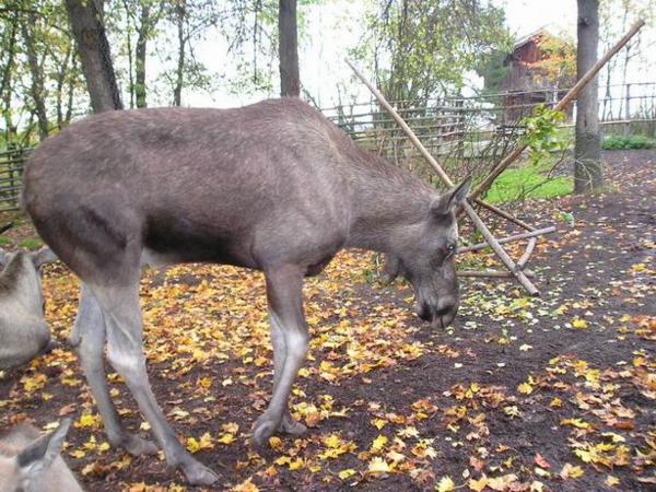 V takovém muzeu se človek dozví spoustu užitečných věcí. Tohle je například část domu rodiny švédského majitele dolů na železnou rudu (18. století). Právě lidé, kteří měli co dočinění s doly, začali ve Švédsku jako první natírat své domy načerveno. Do barvy totiž přidávali různé (červené) odpady, které v dolech zůstávali při těžbě železné rudy. Ty pak chránily (a dodnes chrání) dřevěné domy před nepřízní počasí.Jedna z budov farmy ze severního Švédska z 19. století. Povšimněte si bílé roztřepené věci visící ze střechy. To je březová kůra. Tu ještě počátkem minulého století Švédové hojně využívali k izolaci svých střech před vlhkem a zimou (prý to i dnes funguje znamenitě.)Mnoho venkovských obydlí stojí jakoby ve vzduchu (na kamení nebo na kůlech). Tím se Švédové snažili v minulosti zabránit podmáčení svých obydlí a hospodářských budov a zároveň tak řešili problémy s budováním základů na skalnatých površích.Tráva na starých severských domech je izolačním opatřením. Takže až budete příště odškrabávat ze své střechy mech, nejdřív si to pořádně rozmyslete (ale aby to fungovalo, musíte pod tu trávu nastrkat březovou kůru...)Skrz naskrz dřevěný kostel Segora (18. století).Náhrobní kameny ze 16. století. (Umíte někdo vysvětlit jejich podobnost s náhrobky irskými?)Runový kámen z 20.let 11.století. Na tomhle je napsáno: "Björn, Ődulf, Gunnar a Holmdis vztyčili tento kámen pro Ulfa, manžela Ginlögy. A vytesával Asmund." (mnohem typičtější runový kámen je k vidění v oddíle "Výlet č.2")Laponská stodola. Kůly mají chránit uskladněné potraviny a seno před dravou zvěří. Stodola umístěná tak vysoko nad zemí také usnadňuje přístup ke svému obsahu v zimě, kdy v Laponsku hodně sněží.Typické laponské obydlí ne nepodobné indiánskému teepee. Kostra obydlí je ze dřeva, vše ostatní je mech a kůra (dobré izolanty před vlhkem a zimou). V popředí paroží soba. O Laponsku a Laponcích více v zápiscích v článku "Skansen"Takhle vypadal Stockholm před 150 lety.Takhle si bydlela střední vrstva ve Stockholmu v 19. století.Můj první los - fotka je rozmazaná proto, že jak se ke mě blížil, vůbec jsem se nebála.Jak je vidět, když Pámbů vymýšlel losa, trochu mu, při vší úctě, ujela ruka. Chudák los má hrozně dlouhé tenké nohy, podivně protáhlou tlamu a vůbec je celý takový asymetrický. Ale jinak je docela hezkej. (Navíc průvodce Skansenem tvrdí, že díky tomu, že los vypadá tak, jak vypadá, líp se maskuje v lese. No nevím.)Paní losová.Ve Švédsku žije dnes zhruba 700 medvědů. Mě to docela vyděsilo. Agáta naopak tvrdí, že je to docela málo. Maminka mi vždycky říkala, že když potkám medvěda, mám před ním utéct na strom. Tak nevím, jestli by to pomohlo. (Právě kvůli poznatkům tohoto druhu se vyplatí studovat v zahraničí)Všechna původně skandinávská plemena domácích zvířat jsou (jistě ne náhodou) velmi odolná a houževnatá. Každý druh se snaží nějak se bránit proti zimě. Krávy jsou hodně chlupaté, kozy hodně vousaté.To, co není na tomto obrázku pořádně vidět, je švédský endemit-specielní švédská kráva, která dokáže dávat poměrně dlouhou dobu mléko i když skoro nejí. (Kráva Perpetum Mobile)Švédská plemena oveček dávají člověku vlnu, která je prý nepromokavá (při místním počasí není divu). Čím víc tyto ovce jí, tím bělější prý mají vlnu.