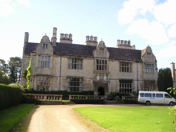 Škola sídlí v panském sídle z 18. století/An 18th century manor houses our schoolTakhle nějak vypadá/This is what it looks likeA kolem něj je spousta kytek a zídek (velmi britské)/It is surrounded by all kinds of bushes,