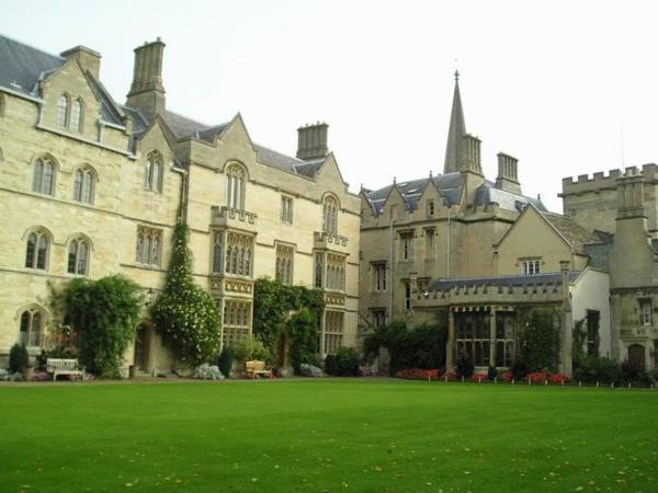 Nádvoří college. Za většinou těch oken bydlí studenti./One of the college´s quads. This is where