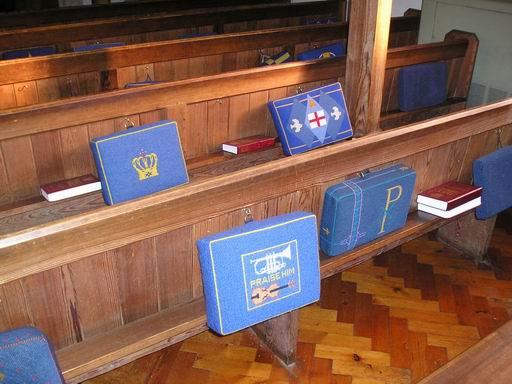polštáře na klečení. Tyto jsou z kostela sv.Martina v Bladonu./In all the churches I have seen here so far