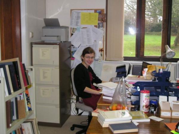 že náš šéf je volnomyšlenkářský Holanďan/Ola cataloguing books in our incredibly messy officeDruhá slečna knihovnice v jedné ze sbírek/In one of the collectionsJá kataloguji sbírku Rabbiho Hugo Gryna z´l, který se mimo jiné velmi intenzivně zaobíral