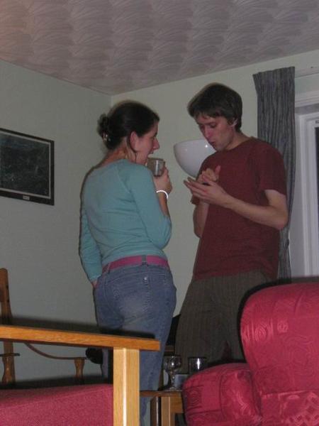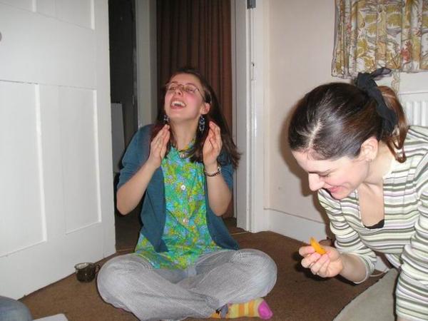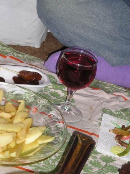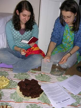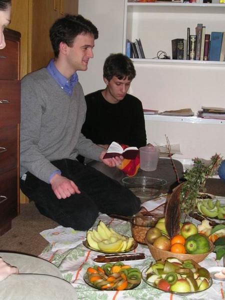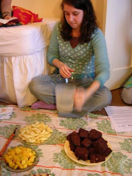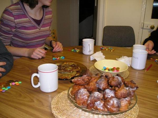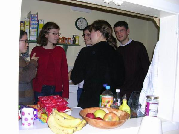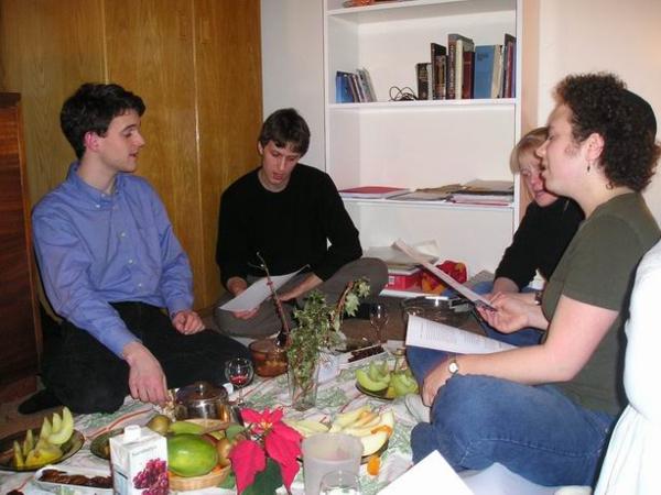 drinks - hot wine and jam cookiesChristoph nás přinutil opékat brambory/Christoph´s infamous hot potatoesMaja o Halloweenu/Maja on HalloweenČajová přestávka "mezi hebrejštinami." Vzadu s hrnkem u pusy moje milovaná učitelka