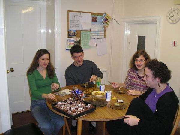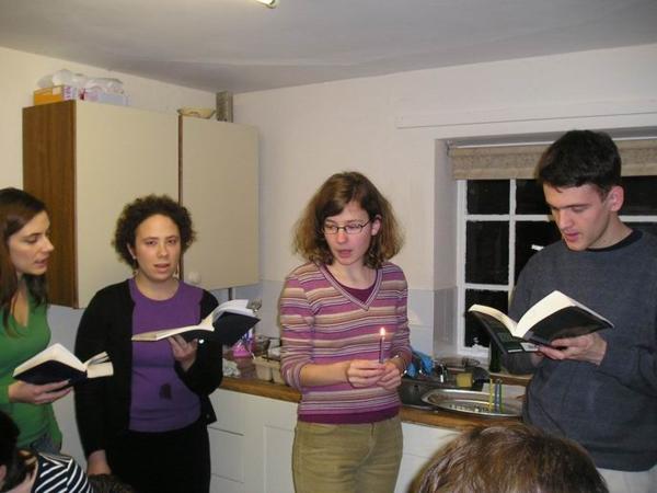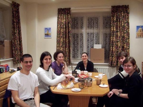 Pálíme/LightningHoří/BurningRabbi ShariChabad OxfordNa večírku s koblihami u Eliho/Eli´s first night doughnut partyMoje slovenská kamarádka Katarina a její manžel Robert/Katarina and RobertZleva/Right to left: kdosi s modrou kipou/somebody with a blue kipah, Sarah, Gabriel, Eli a