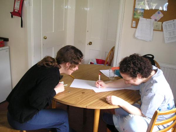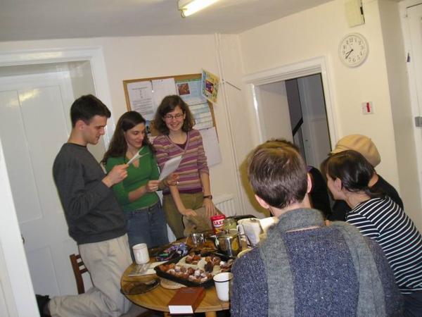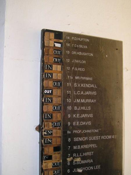 S Natálií/The three of us (can you see the apples?)Natáliini spolubydlící/Natalia's flatmatesMonstrózní St. John's college/St. John's collegeMost vydechů/Bridge of sighsNatalia a Lena/ Natalia and LenaNeodmyslitelné pramice s bidly/Punting - very Oxbridge:-)Velmi důmyslná pomůcka - takhle se pozná, kdo je v kanceláři a kdo ne (a studenti zbytečně