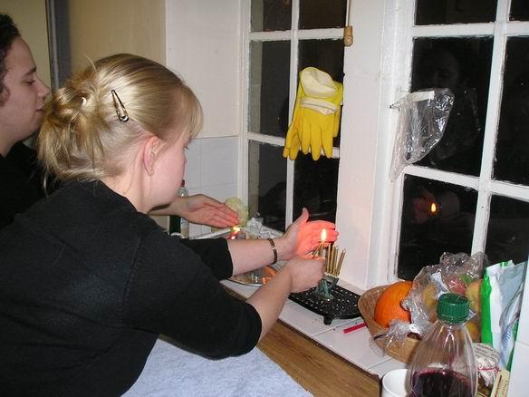chavrutaVaříme a pečeme/Mixing and fryingTřetí/The third oneNaše muzikální skupinové hry/Playing-singingJíme/Never enough cholesterolA hrajem (je to skoro jako z manuálu, ne?)/And playingMy všichni a Christophův palec vpravo/All of us that night and Christoph´s thumbDalší várka hostí (Kelly a Esther)/Another load of hanukah guests (Kelly and Esther)