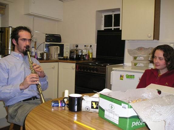 paid a very pleasant visit to our humble homeA moc krásně nám zahrál/And played for usŠkoda, že to neslyšíte/"This one is not Jewish, but it'll pass:-)"Lena se vydává na večer skotské kultury/Lena before her Scottish nightI když je polovina ledna, šechno už tu začíná kvést/In mid-January, Britain is in bloom