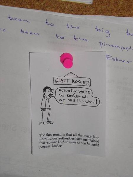 tak košer, že jediné, co podáváme je voda."/And a final bonus from our kitchen notice-board.