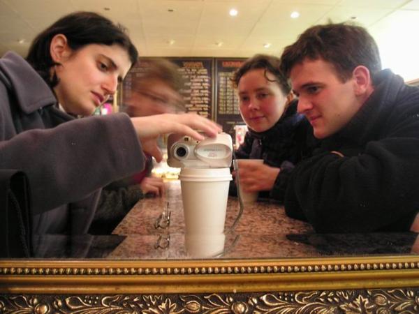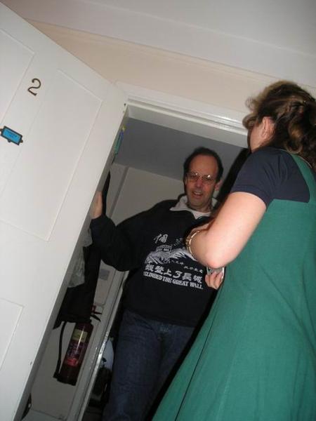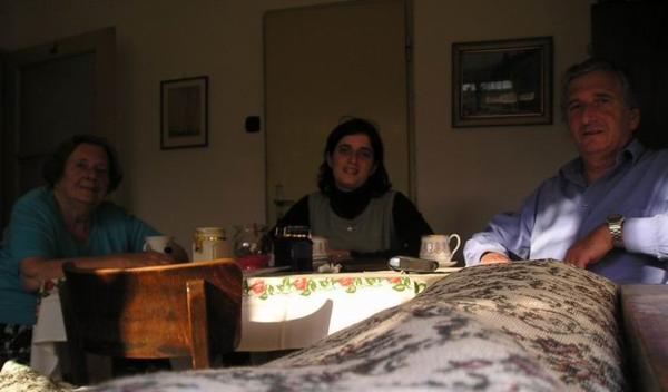fungovalo, kdybychom se chtěli vyfotit v zrdcadle.Funguje to.Rizoto s Piotrem/Rissotto with PiotrPeter (náš pan největší velitel) se svou ženou a Annabel uprostřed./Peter Oppenheimer with his