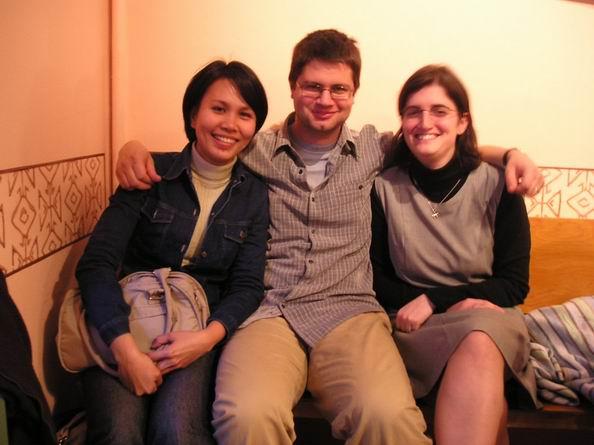 wife and Annabel in the middle.Piet (náš knihovní velitel a zároveň vedoucí mé diplomky) s Olou a Lenou./Piet, Lena and Ola.