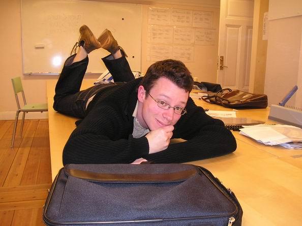 dobře."/One of the many oddities of Oxford)Náš nový knihovní kolega Michael - k večeři byla čína-sojové jako-kuře s pórkem, houbami a