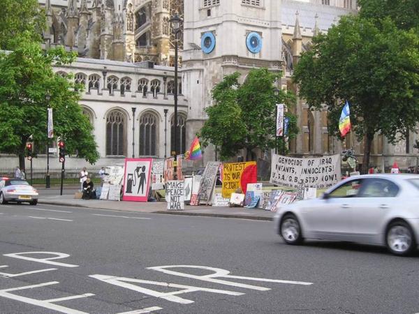 Tato zeď musí rychle padnout.")/Politics under the Waterloo BridgeUmění na každém kroku/Art - wherever you goSlavné London Eye/London EyeA slavný Big Ben/The Big BenMy dvě trochu toporně na Trafalgar square (když jsem byla v Londýně před 13 lety poprvé, vylezli