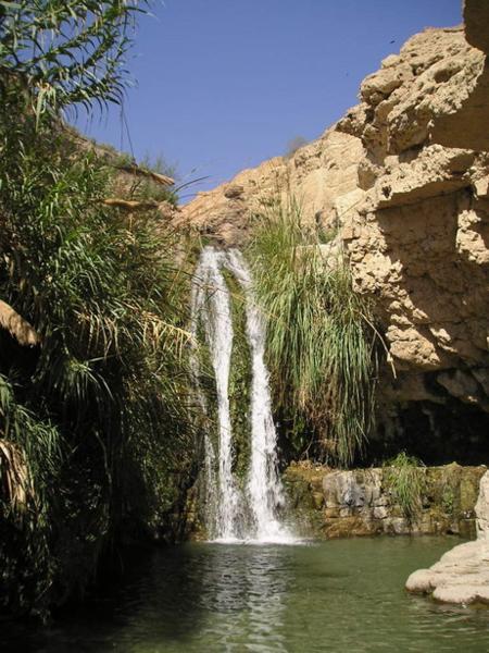 Ein Gedi/A green Ein Gedi oasis in the middle of Negev desertKdyž se pořádně podíváte, uvidíte perfektně maskované kamzíky:-)/Search for two well hidden animals in the pictureNěkolik mých spolužáků/Some of the Yeshiva crowdJoseph, Niki a IlanaJacob, jehož kožní typ se hodí nejtepleji tak do Dánska/Jacob hiding away from the burning sunPodivné palmy/Very weird palm treesMůj chavruta Adiv a jeho žena Ilana. Všichni jsme turisticky napatlaní mrtvomořským bahnem/My chavruta Adiv and his wife IlanaMůj chavruta Dani/My chavruta Dani