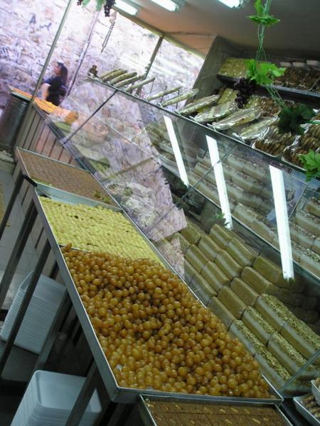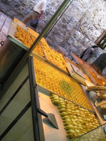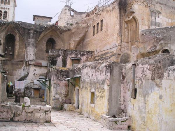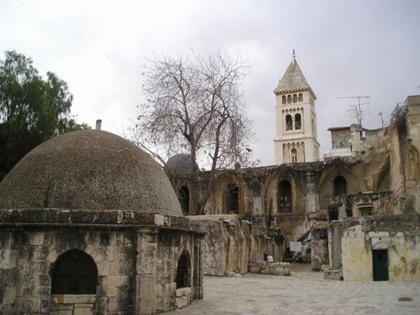 Pohled na Kostel Sv. Hrobky (místo, kde byl podle křesťanské tradice pochován Ježíš)/ Church of Holy Sepulchre (the place is believed to be the site of Jesus´s grave)Různé obrázky uvnitř kostela/Various pictures of the insideKoptská část křesťanské čtvrti/Coptic part of the Christian quarterArabský chleba plněný drcenými datlemi/Arab bread filled with crushed datesTohle místo jsem objevila náhodou - je z něj neobvyklý pohled na celé staré město (případným zájemcům ráda prozradím, kde to je:-)/Just by chance I found this place with an unusual view of the Old town (I am willing to reveal the secret of where exactly it is, though)Páteční zmatek před bezpečnostní kontrolou na hranici mezi žid.a musl. čtvrtí/Friday chaos on the security check between the Jewish and Muslim quarters