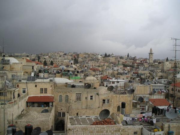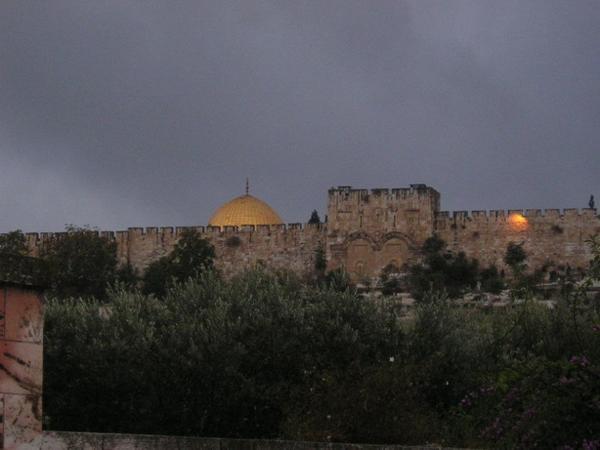 Zleva tatínek, maminka, dědeček a babička/Me´tal with parents and gradparentsMaminka dostala první aliu/The new mother´s first aliyahPožehnání od Roš Ješivy reb Šmuela/Rosh Yeshiva´s blessingTohle mělo být já a Roy a panoramatický záběr Jeruzaléma. Jinou fotku z jeho návštěvy nemám./ This was supposed to be Roy and I with the scenery of Jerusalem at dusk. I pasted the picture because I dont have any other and I wanted you to believe me we really metRoy mě mimo jiné vzal na procházku po campusu Hebrejské univerzity. Toto je dech beroucí výhled na Judskou poušť a Jordánsko z Har Ha-Cofim/Among other places, Roy took me to the Hebrew University Campus. This is the breath taking view on Judean desert from Har Ha-TzofimTohle mělo být za námi na té nepodařené fotce./ This is what you should have seen behind Roy and me two pictures agoZapadající slunce nad zamračeným Jeruzalémem 2 dny před tím, než začalo pršet./ Cloudy Jerusaelm dusk 2 days before the rain startedV Jeruzalémě začalo pršet a já se vydala na návštěvu starého města. Jela jsem na kole, nechtěla jsem zmoknout a chtěla jsem v muslimské čtvrti vypadat nenápadně. Clary to okomentovala slovy: "Neboj, teď vypadáš bezpečně jako muslimka."/ A combination of rain protection, road cycling safety and an (unsuccessful) attempt to dress modestly for the visit of the muslim quarter of the Old TownPři první cyklo-jízdě deštivým Jeruzalémem jsem si poprvé všimla, že moje kolo nemá blatníky/ During the first bike ride through rainy Jerusalem, I noticed with great surprise that my bike has no fendersV muslimské čtvrti starého města se sežene všechno od špendlíků po krávu/You name it and you shall get it in the muslim quarter of the Old Town (for no price)Příprava skopového rizota pro konec denního ramadánového půstu/Preparing a lamb rozzotto for breaking the ramadan fastZásobování v úzkých uličkách/Transporting supplies in the narrow streetsOvocný trh u Damašské brány/ Fruit market at the Damascus GateJedna z uliček/One of the Muslim quarter streetsMuslimské ženy prodávající čerstvou mátu, hrozny a datle/Muslim women selling fresh nana, grapes and datesPečení velkách chlebových placek lafa/ Baking the arab lafasTradiční blízkovýchodní řeznictví/Traditional Middle East butcher´sArabské sladkosti, které jsou nedílnou součásti večerních ramadánových hostin/Traditional arab sweets, essential part of the every day break of the ramadan fastSlavné arabské lívance katajf, které muslimové plní sladkým nebo slaným sýrem, ořechými a podobnými dobrotami a jedí je při večerní hostině během ramadánu/ Kataif - traditional pancake, which the muslim fill with cheese and nuts and eat for the after-fast feast during Ramadan...a víc sladkého/...and more sweets...a ještě trochu/...and even moreBez komentáře/Self-explanatoryArménská čtvrť (ne vždy všichni chodí přikázaným směrem)/Armenian quarter (not everybody follows the signs)Jeruzalémané v prvním dešti/The first rain at Jaffa gateSukot u zdi nářků (sem tam je vidět pány třesoucí "čtyřmi druhy")/Sukot at the Western Wall (notice several men shaking the arba minim)Ti mladíci s divnými bílými věcmi na hlavě si jen chrání klobouky před deštěm/The funny white things on the boys´heads are plastic bags protecting their hats from rainVýchodní (palestinský) Jeruzalém/ East (Palestinian) JerusalemPohled na Jeruzalém z Olivetské hory přes židovský hřbitov/A view of Jerusalem from Mount of Olives over the Jewish cemeteryPřekvapivé smetiště na hřbitově na vrcholu Olivetské hory/Junk at the top of the Mount of Olives cemetary takes by surpriseOlivetská hora s kostelem Domine Flavis/Mount of Olives with Domine Flavis church on the rightDomine Flavis a ruský ortodoxní kostel sv. Máří Magdalény/ Domine Flavis and Russian orthodox Church of St. Mary MagdaleneZapomenutá rakev na hřbitově na Olivetské hoře/Abandoned cofin at the Mount of Olives cemeteryPo prvním prudkém dešti/After the first torrential rainPohled na Olivetskou horu z údolí Kidron/A view of Mount of Olives from Kidron Valley