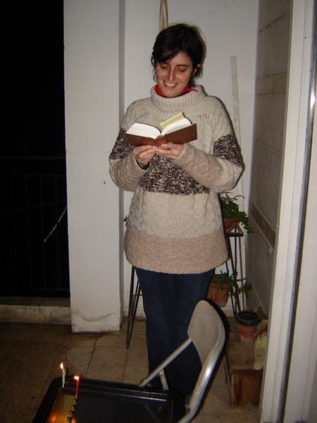 Clařina chanukie/Clary´s chanukiaA moje u nás na balkóně/And the one of mine at our balconyU Zviho Zohara/ At Zvi Zohar´sClařina kamarádka Kimberly/Kimberly, Clary´s friendBarbara Spectre na návštěvě Jeruzaléma/Barbara Spectre visiting Jerusalem